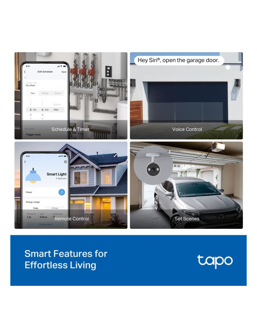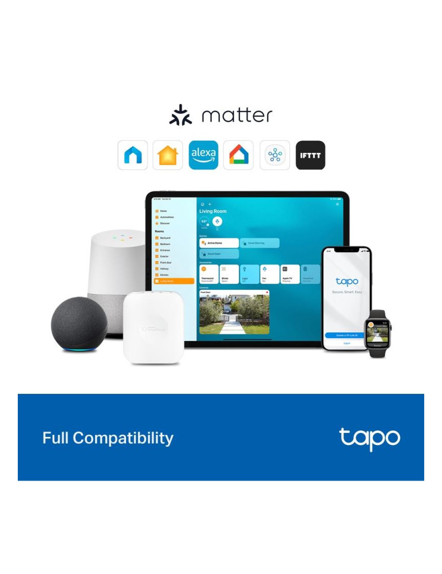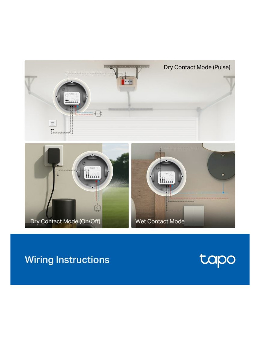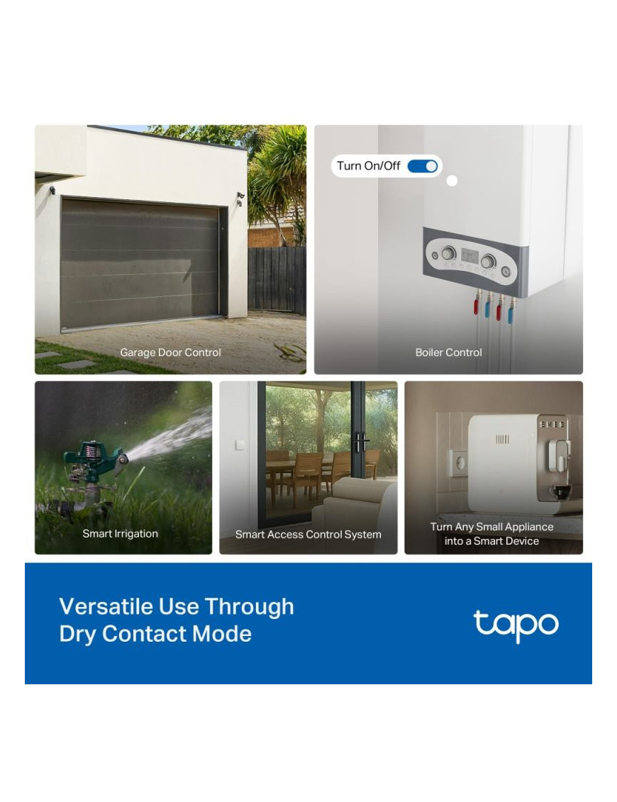 Tapo S110E: Inteligentný spínací modul s Matter - Kompaktný Wi-Fi/Bluetooth modul (44.7x33.9x16.1 mm) pre inteligentné ovládanie. Podporuje duálny režim: bezpotenciálový (suchý kontakt, 5-30V/10A) pre riadiace systémy (brány, kotly) a potenciálový (mokrý kontakt, 100-250V~/10A) pre svetlá a zásuvky. Disponuje hardvérovým obojsmerným meraním energie pre sledovanie spotreby aj výroby (napr. z FV). Certifikácia Matter zaisťuje plnú interoperabilitu (Apple Home, Alexa, Google). Obsahuje ochranu proti prechodu nulou pre dlhšiu životnosť relé. Inštalácia do EU krabíc.