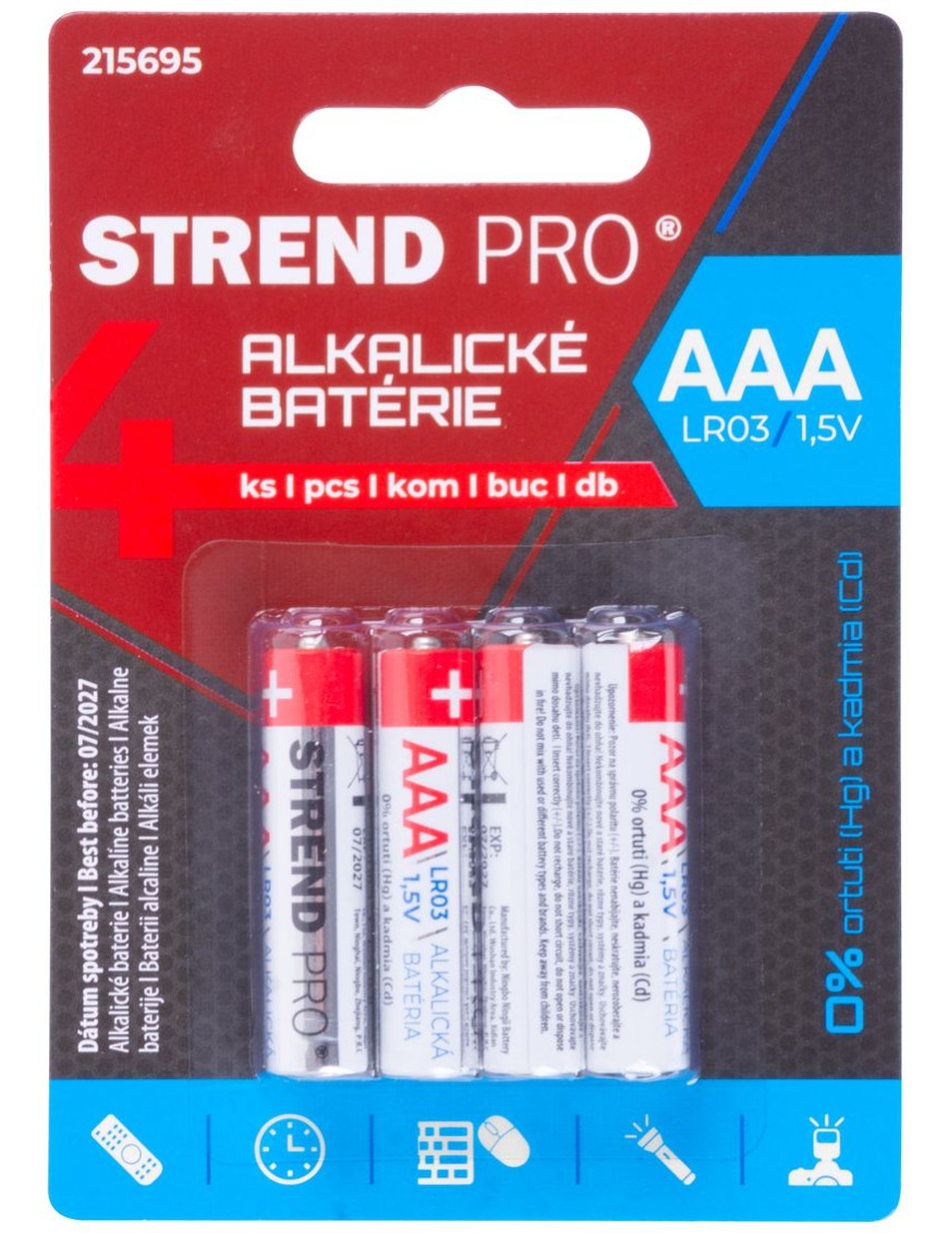 Praktické 4-kusové balenie alkalických batérií Strend Pro s označením AAA. Vyznačujú sa vysokou kapacitou. Neobsahujú ortuť ani kadmium. Univerzálne použitie do všetkých zariadení na batérie typu AAA ako napríklad hračky, svietidlá, dekorácie a mnoho ďalších.