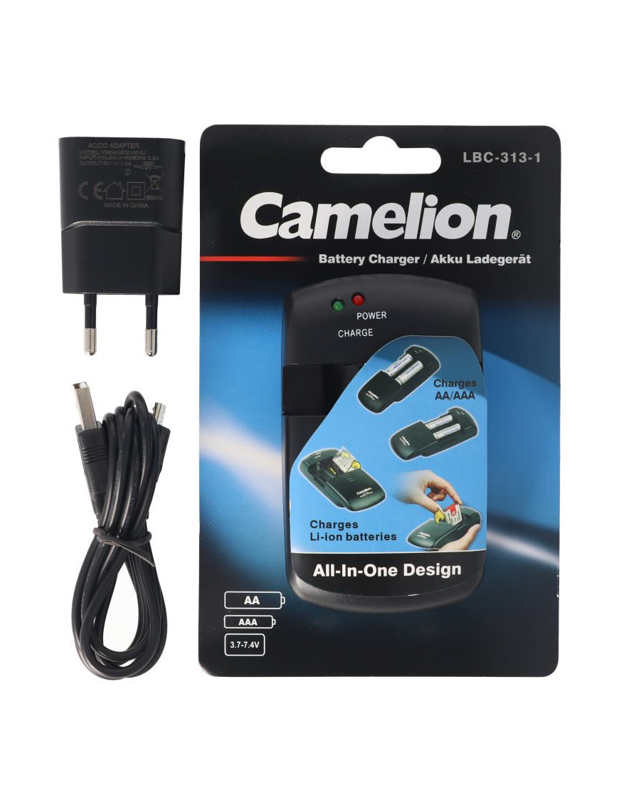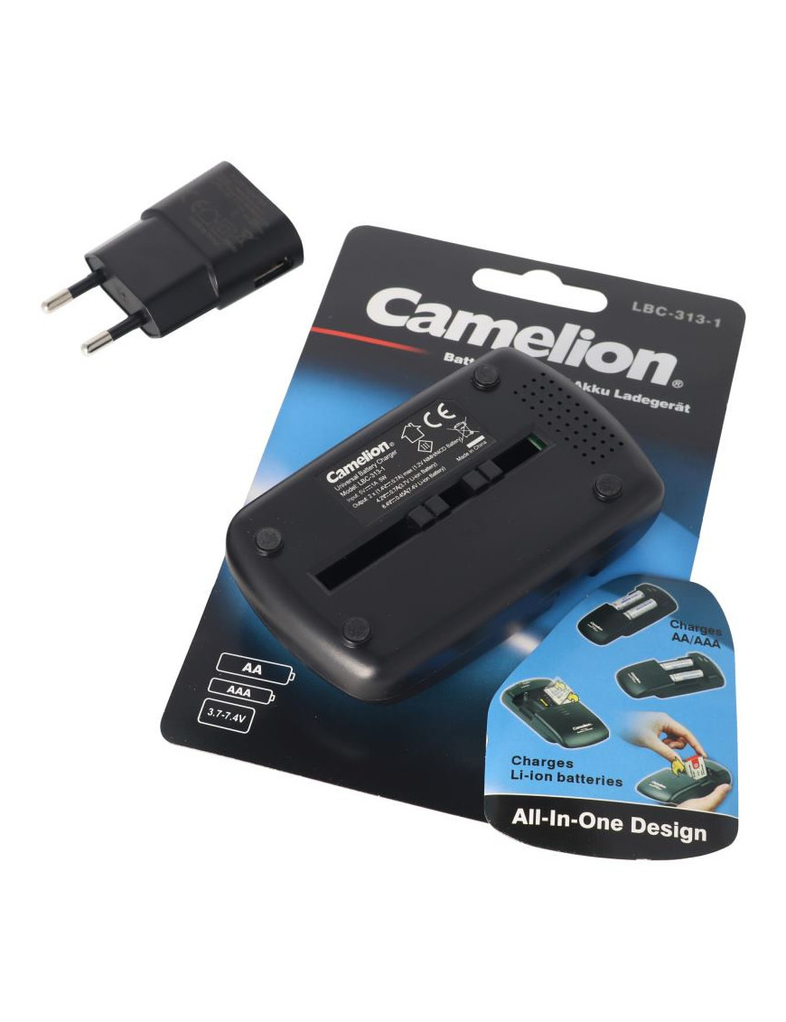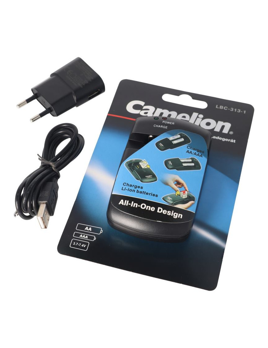 Univerzálna nabíjačka Camelion LBC-0313-1 je kompatibilná so širokou škálou nabíjateľných batérií: 1,2V Ni-MH a 3,7V/7,4V Li-Ion. Je ideálna pre zariadenia ako fotoaparáty, mobily či herné konzoly. Vďaka mikroprocesoru automaticky rozpozná typ batérie, jej napätie a polaritu. Nabíja sa cez USB port a disponuje bezpečnostnými funkciami ako detekcia chybných batérií a časovač. Stav nabíjania je signalizovaný LED diódami. Je ľahká, váži len 51,2 g.