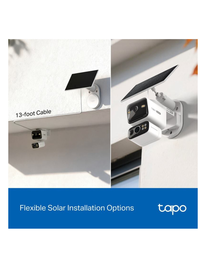 Tapo C645D KIT je solárne napájaná duálna PTZ bezpečnostná kamera s dvomi 2K šošovkami pre široký záber a presný zoom. Ponúka AI detekciu osôb, vozidiel a domácich zvierat bez predplatného. Vďaka synchronizovanému sledovaniu a inteligentnému zaostrovaniu vám neunikne žiaden detail. Solárne napájanie, 10 000 mAh batéria s výdržou 4 mesiace a IP65 odolnosť zaručujú spoľahlivú prevádzku. Disponuje farebným nočným videním, duálnym Wi-Fi a integráciou s Google Assistant/Alexa. Perfektné riešenie pre komplexné zabezpečenie s dlhou výdržou.