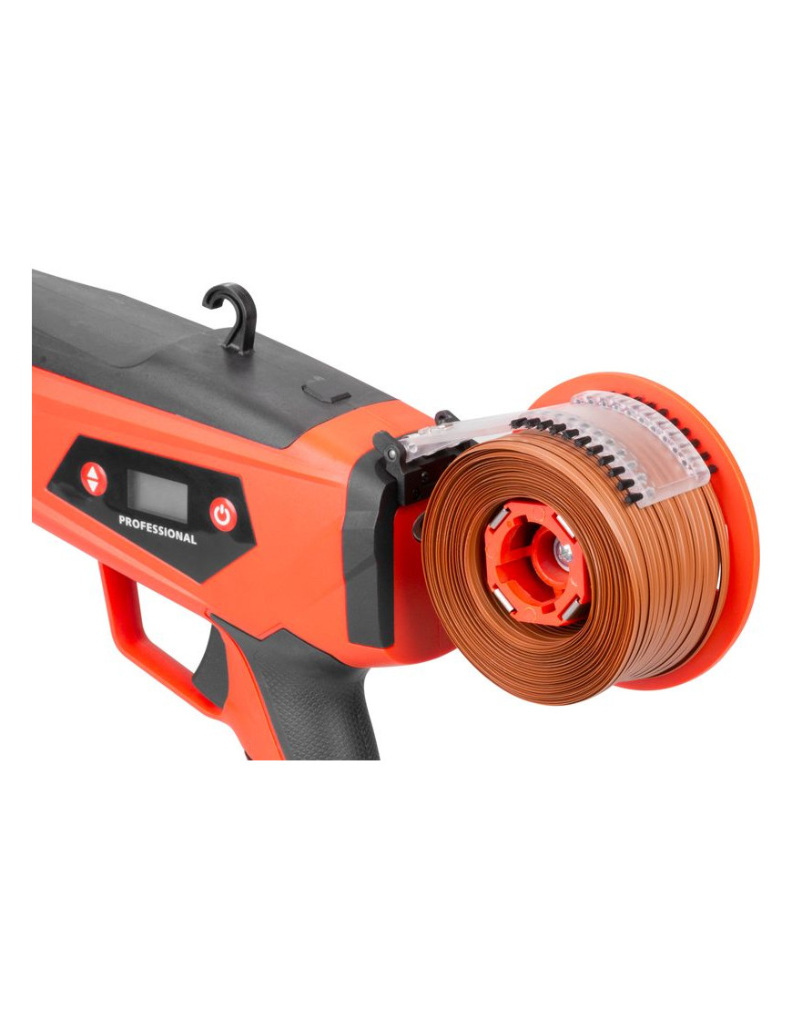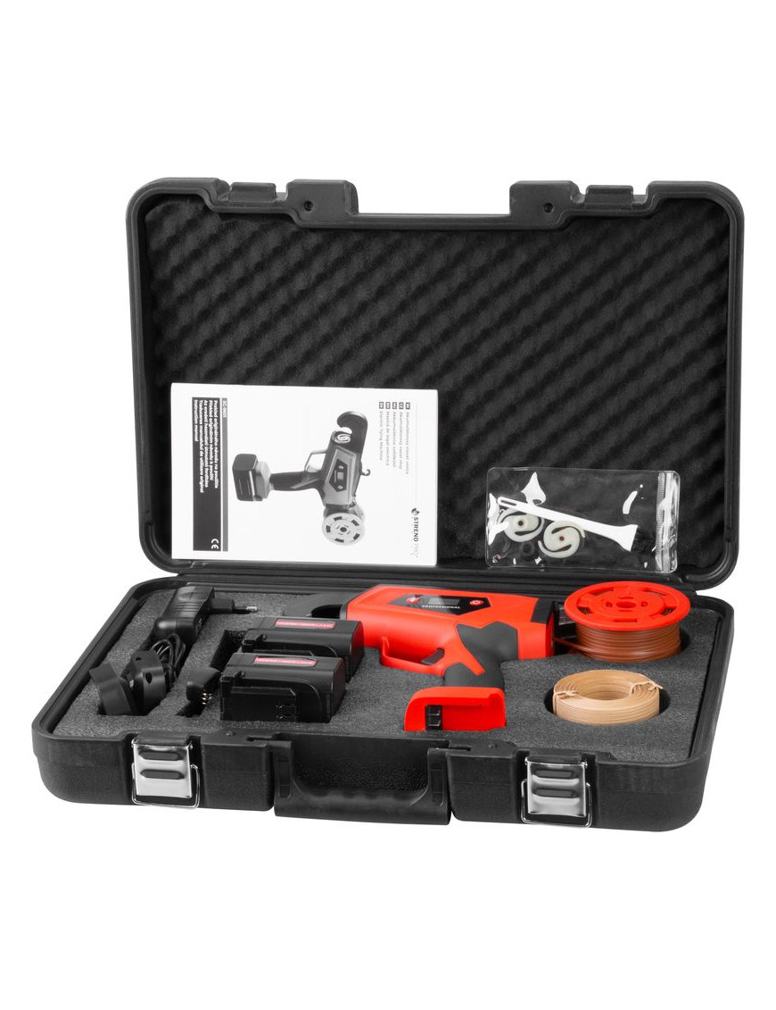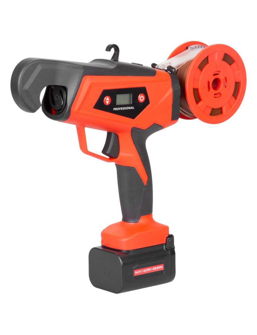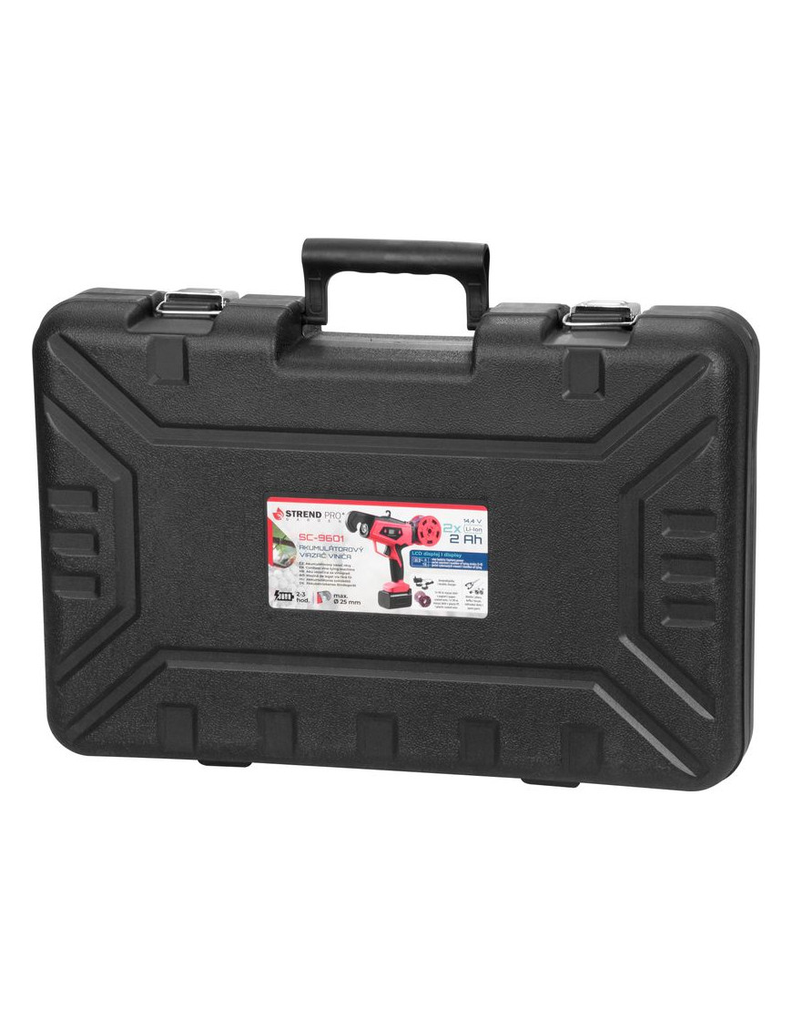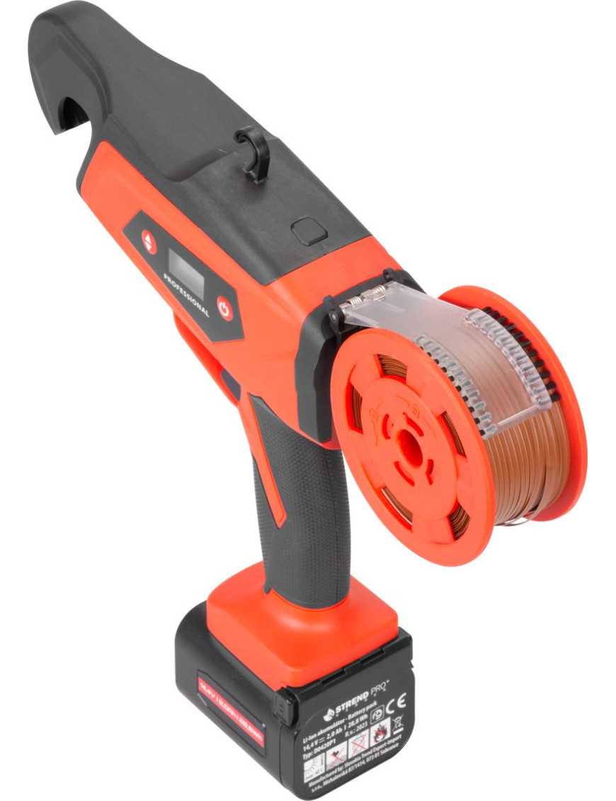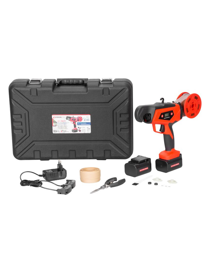 Akumulátorový viazač viniča Strend Pro Profesional s LCD displejom sa používa najmä na viazanie výhonkov viniča (eventuálne ostatných rastlín) s priemerom maximálne do 25 mm. Výrazne uľahčuje prácu vo vinosadoch, práca je nielen jednoduchá, ale uviazaný spoj je aj oveľa kvalitnejší ako pri ručnom viazaní. Na jedno nabitie umožňuje až 8000 uviazaní. Balenie obsahuje: 1x viazač, 2x akumulátor 2.0 Ah, 1x dvojnabíjačku, 1x viazací drôt v papieri, 1x viazací drôt v plaste, kliešte, kefku a náhradné diely.