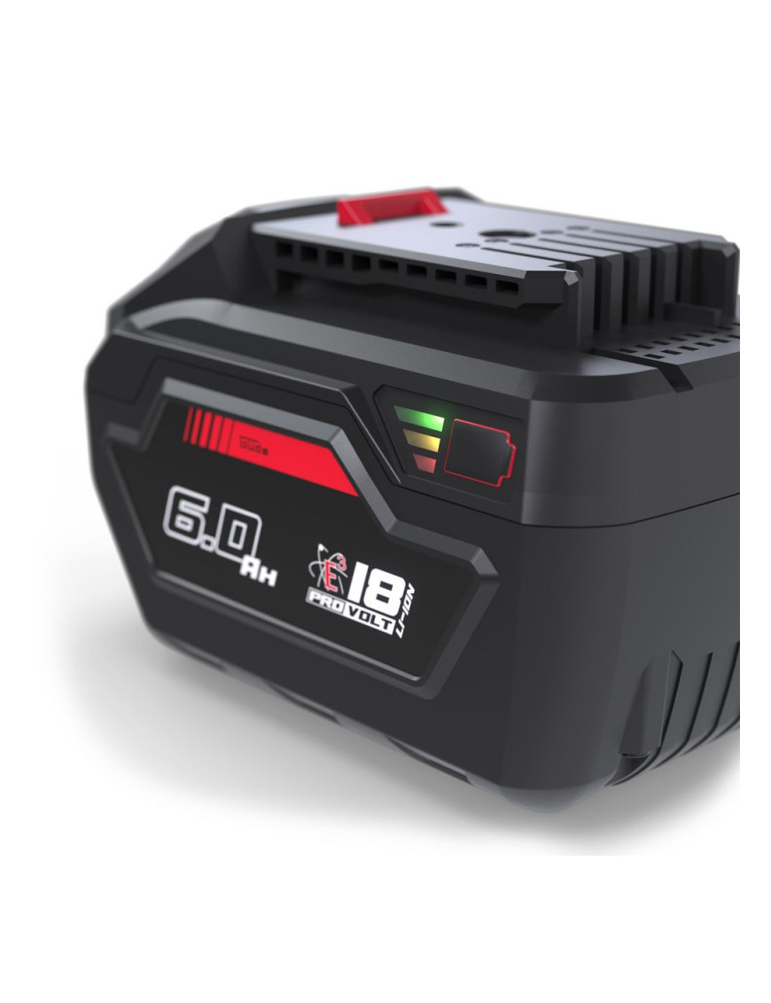 Akumulátor 6,0 Ah vhodný pre všetky náradia zo série akumulátorového náradia 18V E3. Lepšie chladenie, vyššia kapacita, protišmykové pogumovanie.
