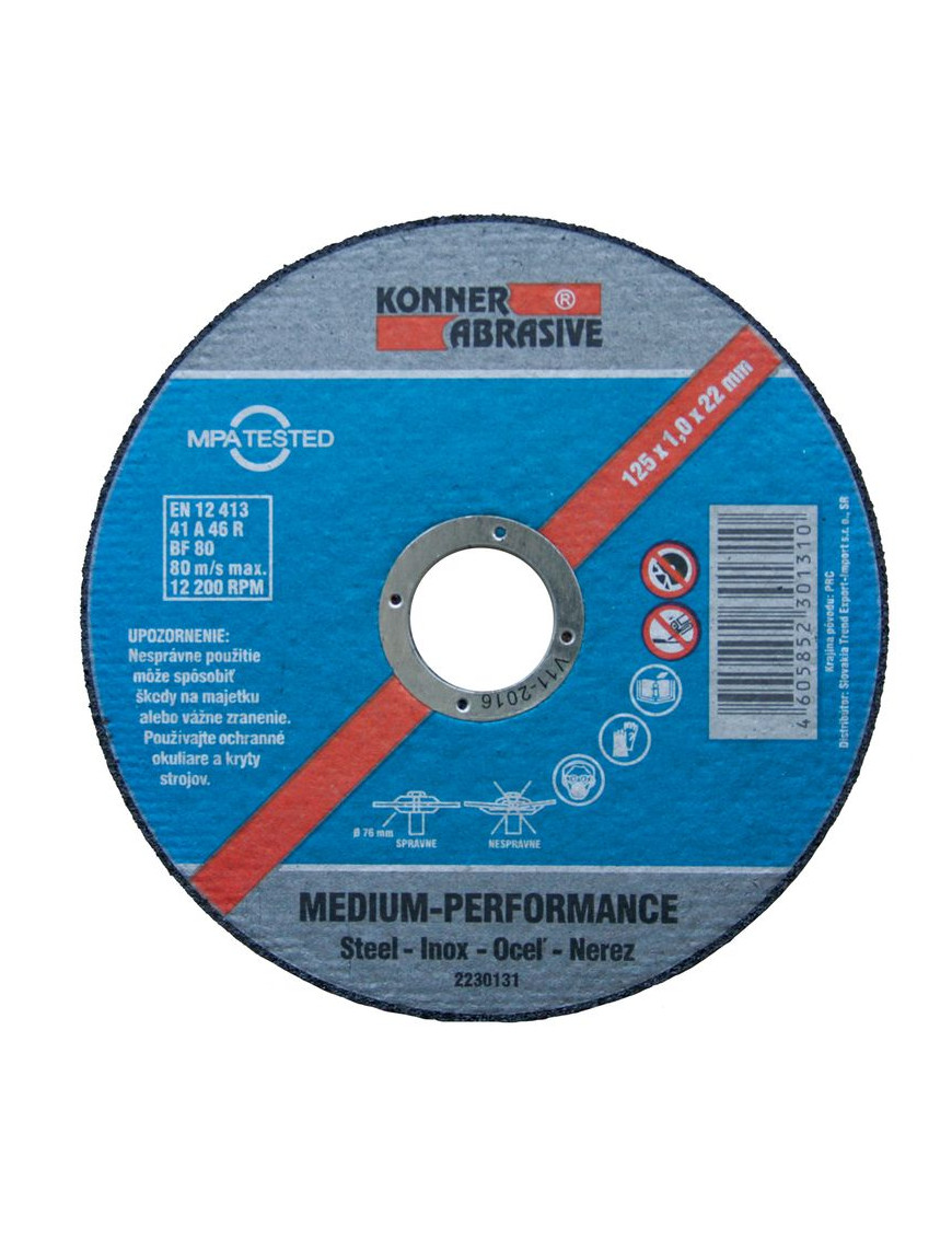 Kotúč KONNER D603 125x1,0x22 mm, rezný na kov