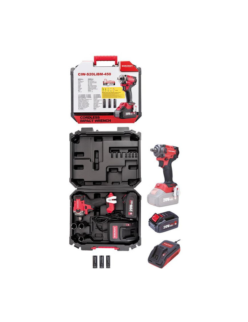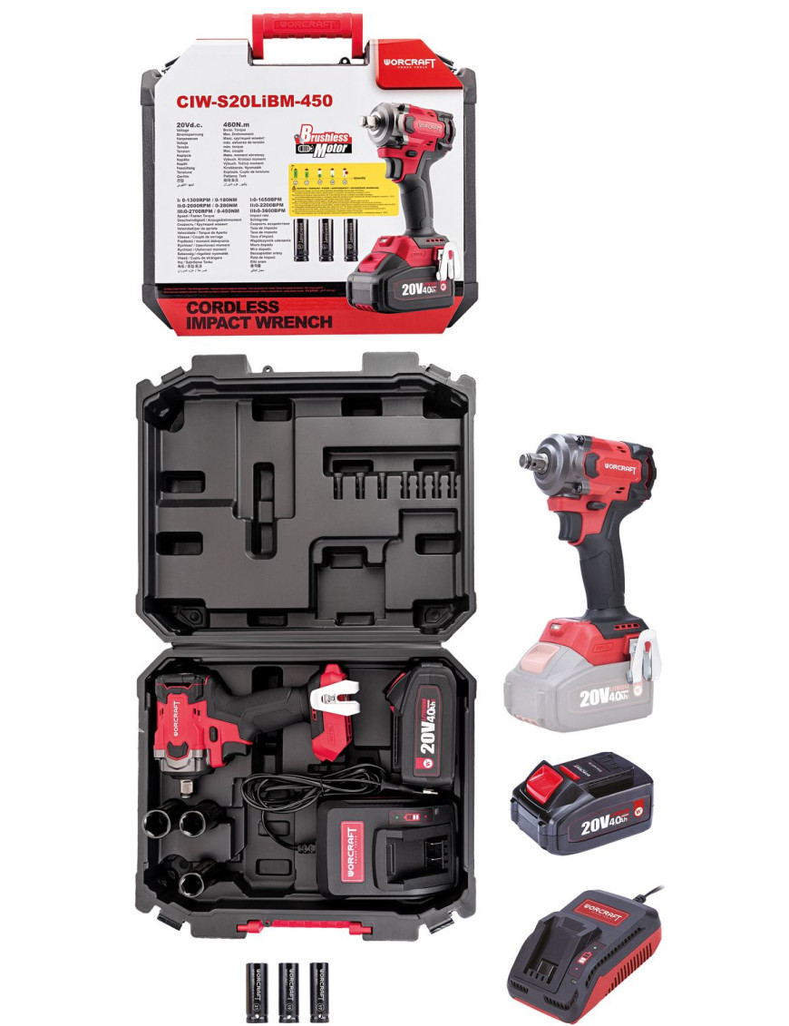 Uťahovák Worcraft CIW-S20LiBM-450 ShareSYS, 20V Li-Ion, rázový, 450Nm, 1/2" square, SET 1x akumulátor 4.0 Ah + rýchlonabíjačka,