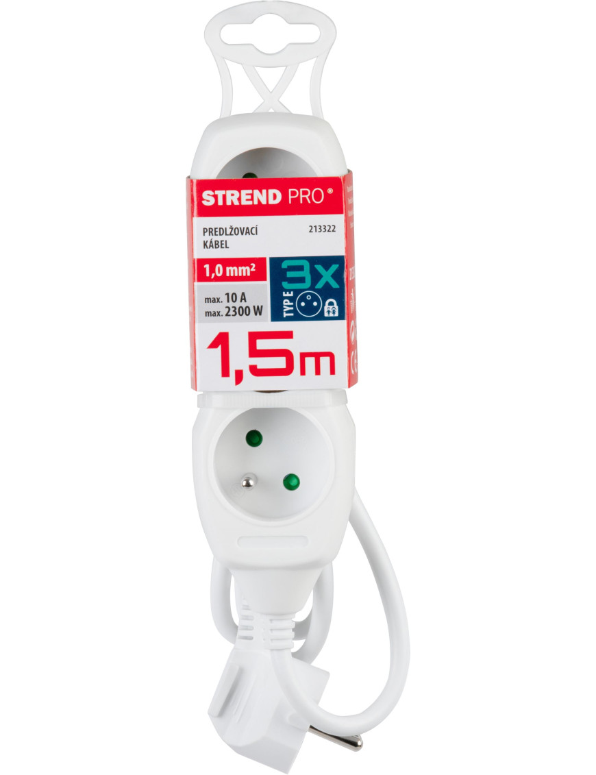 Kábel DG-F803B L-1.5 m, predlžovací, biely, 3x zásuvka, new edition