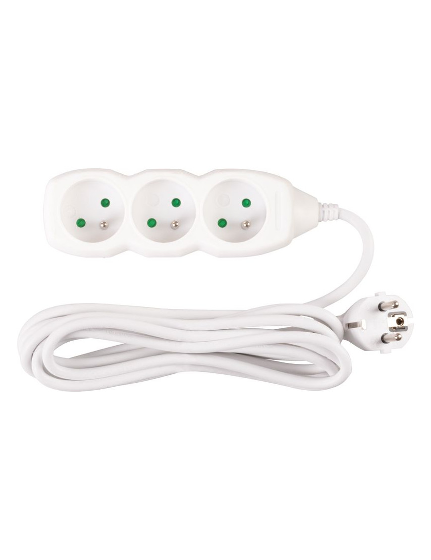 Praktický predlžovací kábel DG-F803B v bielej farbe zabezpečí prívod elektrickej energie až do dĺžky 3 metre. Svoje využitie nájde v kanceláriách, ale aj v domácnostiach. Vďaka trom zásuvkám umožňuje pripojenie viacero zariadení naraz.