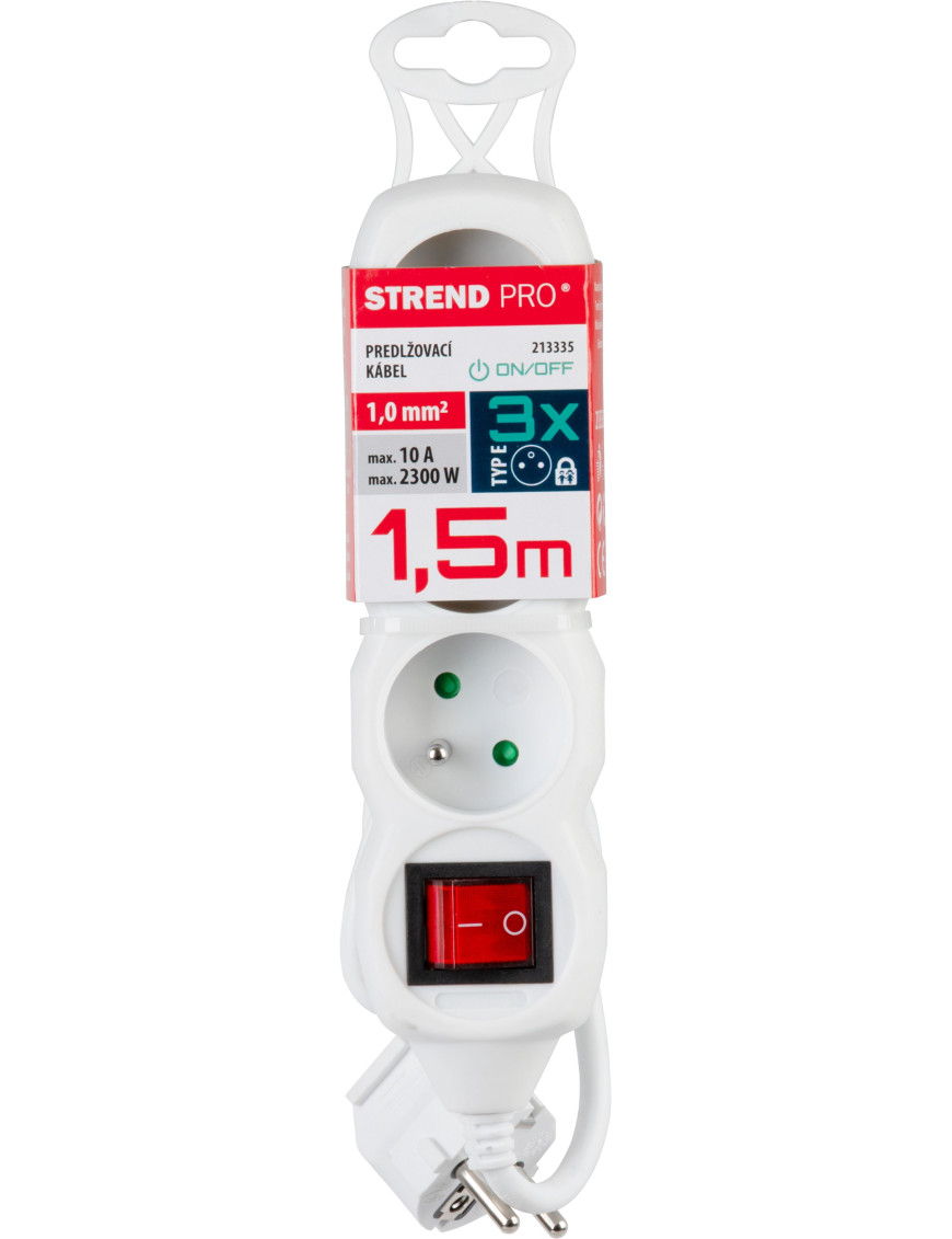Kábel DG-F803BK L-1.5 m, predlžovací, biely, 3x zásuvka + vypínač, new edition