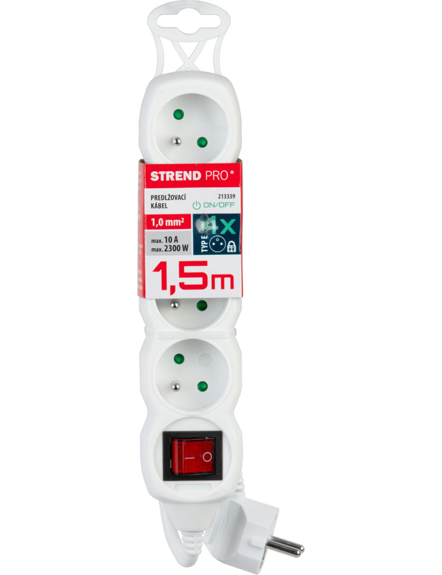Kábel DG-F804BK L-1.5 m, predlžovací, biely, 4x zásuvka + vypínač, new edition