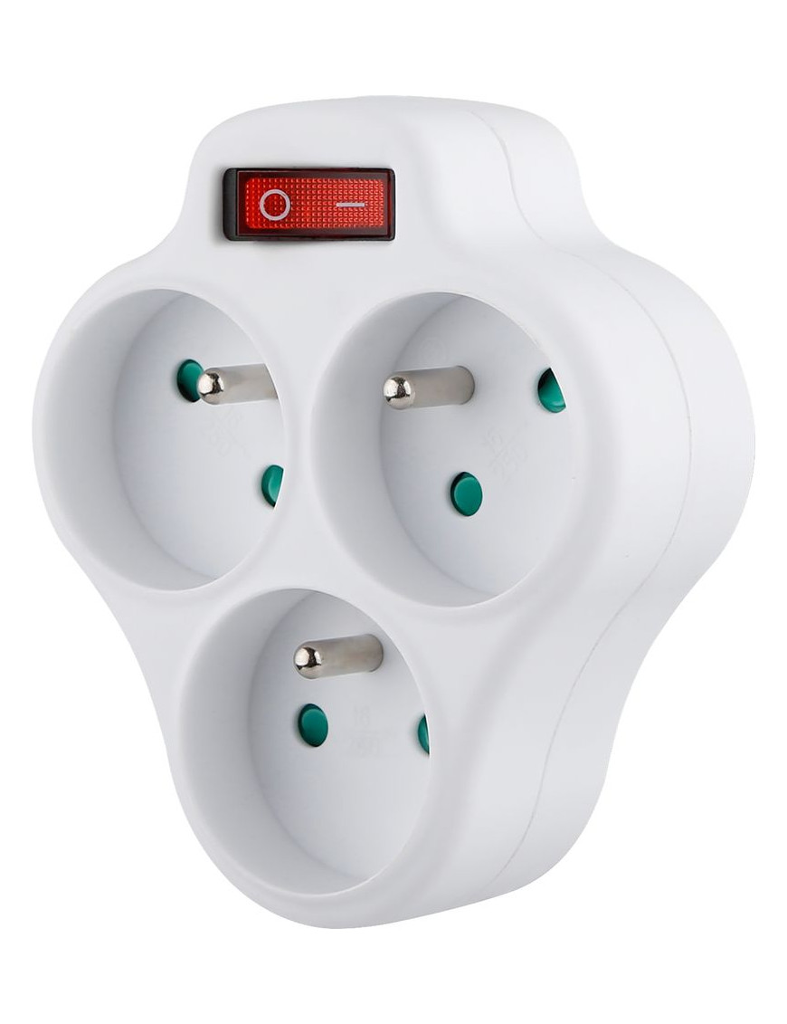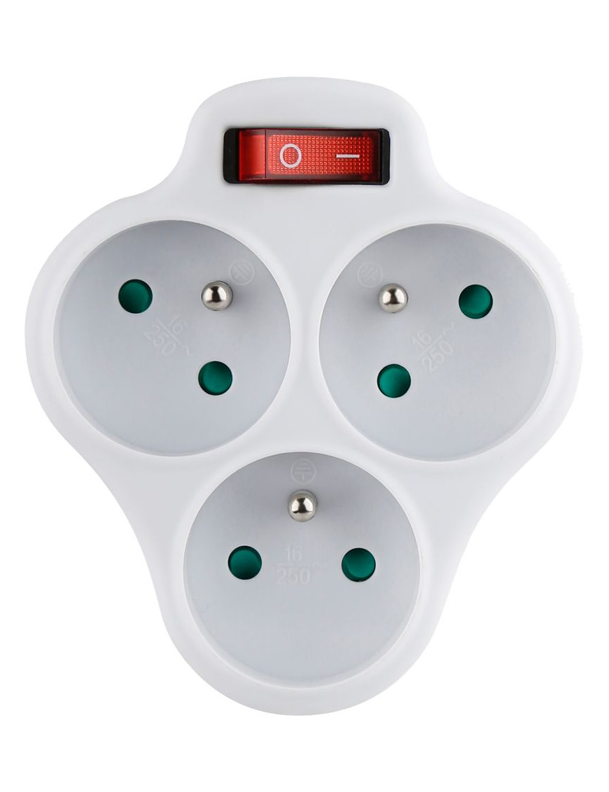 Zásuvka Strend Pro, rozbočovacia, biela, 3x 16 A, vypínač
