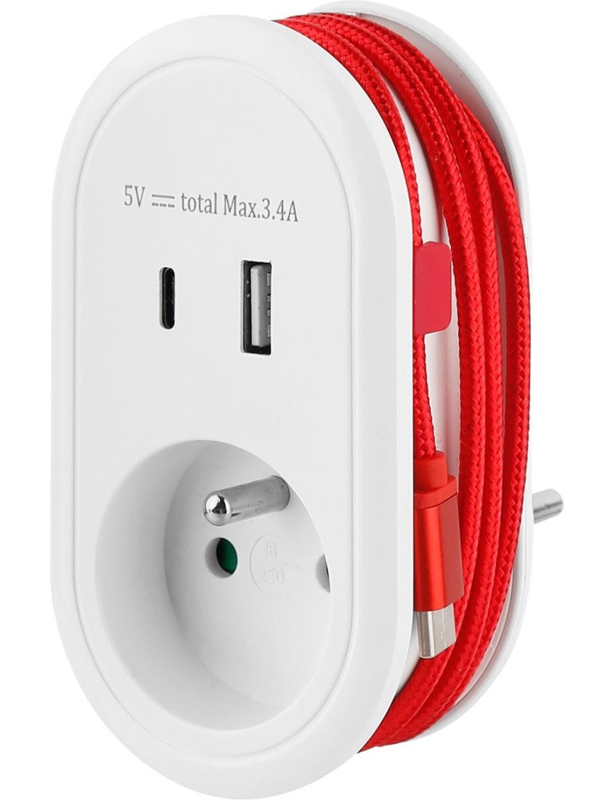Zásuvka Strend Pro s USB-A a USB-C portom je praktické riešenie pre nabíjanie rôznych elektronických zariadení. Súčasťou balenia je USB-C kábel, ktorý umožňuje priame pripojenie moderných smartfónov, tabletov či iných zariadení s USB-C konektorom.