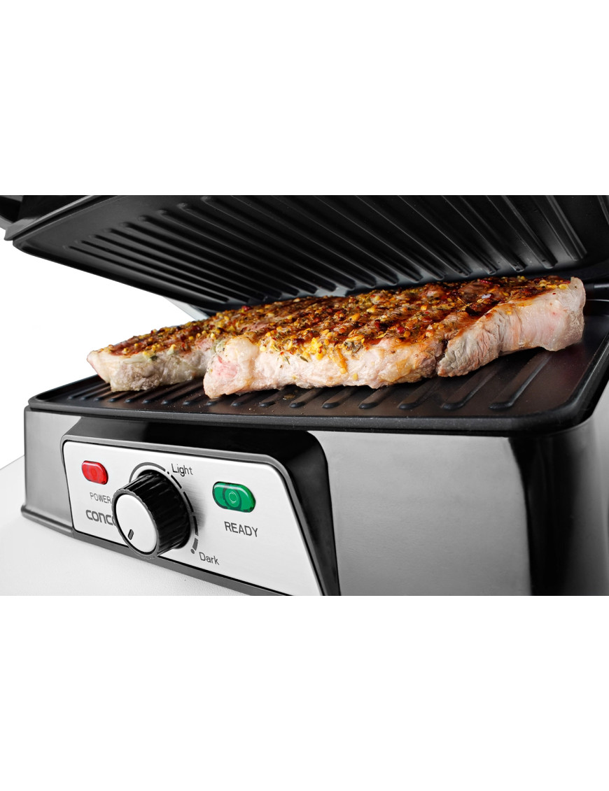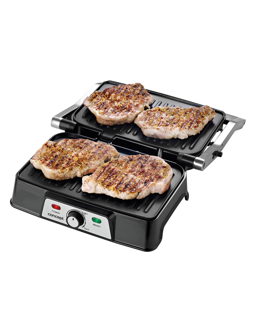 Príkon 1500 W umožní rýchle nahriatie grilu a umožní perfektné prepečenie aj vysokých steakov. Pomocou regulátora teploty si nastavíte vhodnú teplotu na prípravu rôznych druhov zeleniny, mäsa, ovocia a pod. Vaše steaky už nikdy nebudú príliš alebo málo prepečené. Kvalitné nepriľnavé liatinové platne zaistia Vášmu grilu dlhú životnosť. Môžete si pochutnávať na grilovaných dobrotách v každom ročnom období, pretože gril môžete používať doma aj vonku. Pri použití v domácnosti odporúčame gril postaviť pod odsávač. Údržba grilu je absolútne jednoduchá. Grilovacie platne stačí utrieť papierovou utierkou a Váš gril bude zasa ako zo škatuľky