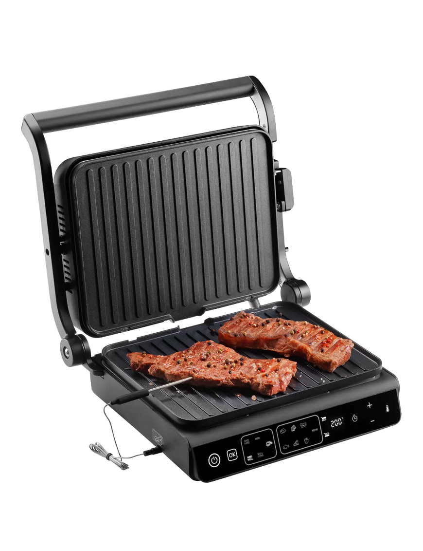 Máte radi dokonale pripravený steak, ale nedarí sa vám dosiahnuť presne tú úroveň prepečenia, ktorú si prajete? S funkciou GRILL ASSISTANT už nemusíte váhať. Stačí zapichnúť teplotnú sondu do mäsa, vybrať požadovanú úroveň prepečenia - či už krvavý, medium alebo dobre prepečený - a gril sa postará o zvyšok. Výsledkom bude steak presne podľa vašich predstáv a úplne bez námahy.