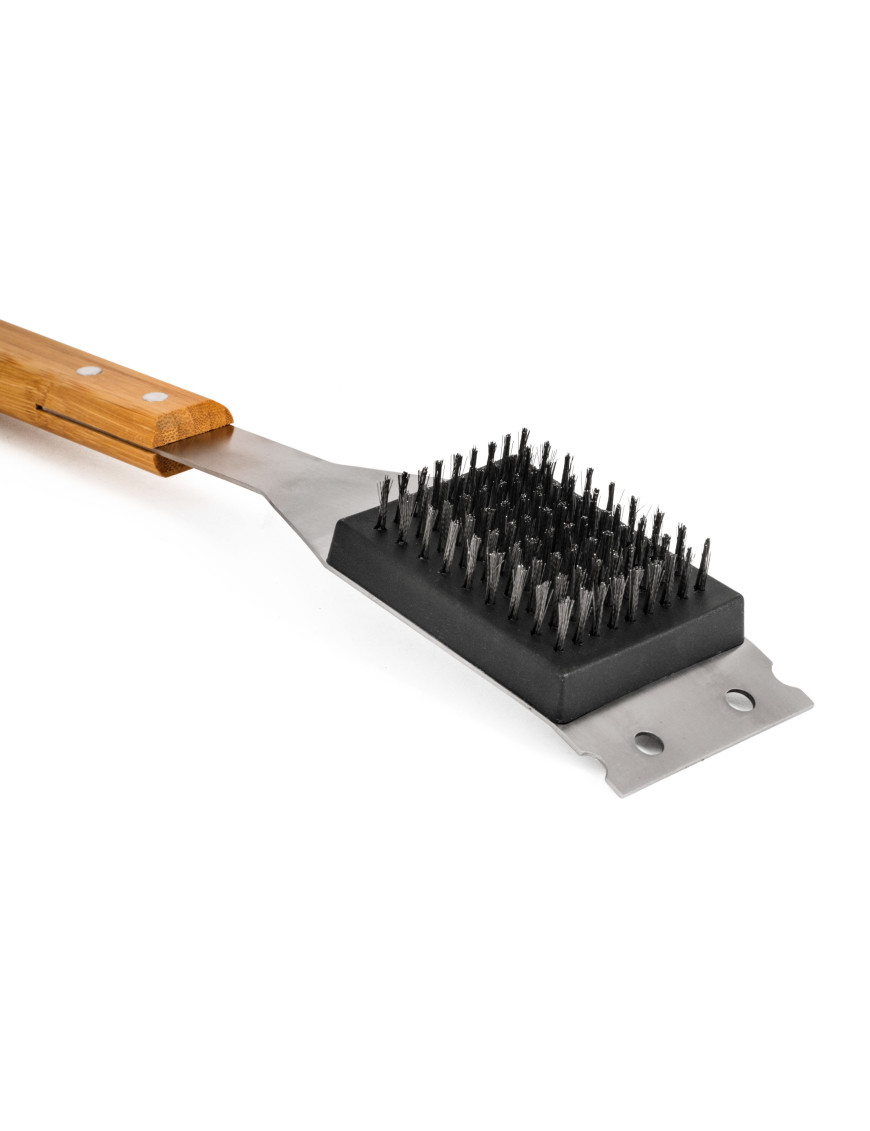 Po každom grilovaní prichádza na rad upratovanie – a s tým vám pomôže čistiaca kefa G21. Hrubé štetiny si poradia s odolnou mastnotou a vďaka praktickej škrabke odstránite aj silnejšie nánosy nečistôt. Ergonomicky tvarovaná bambusová rukoväť dobre padne do ruky a zároveň dodáva náradiu prírodný vzhľad. Vďaka dĺžke 45,3 cm sa navyše dostanete aj do horšie prístupných miest.