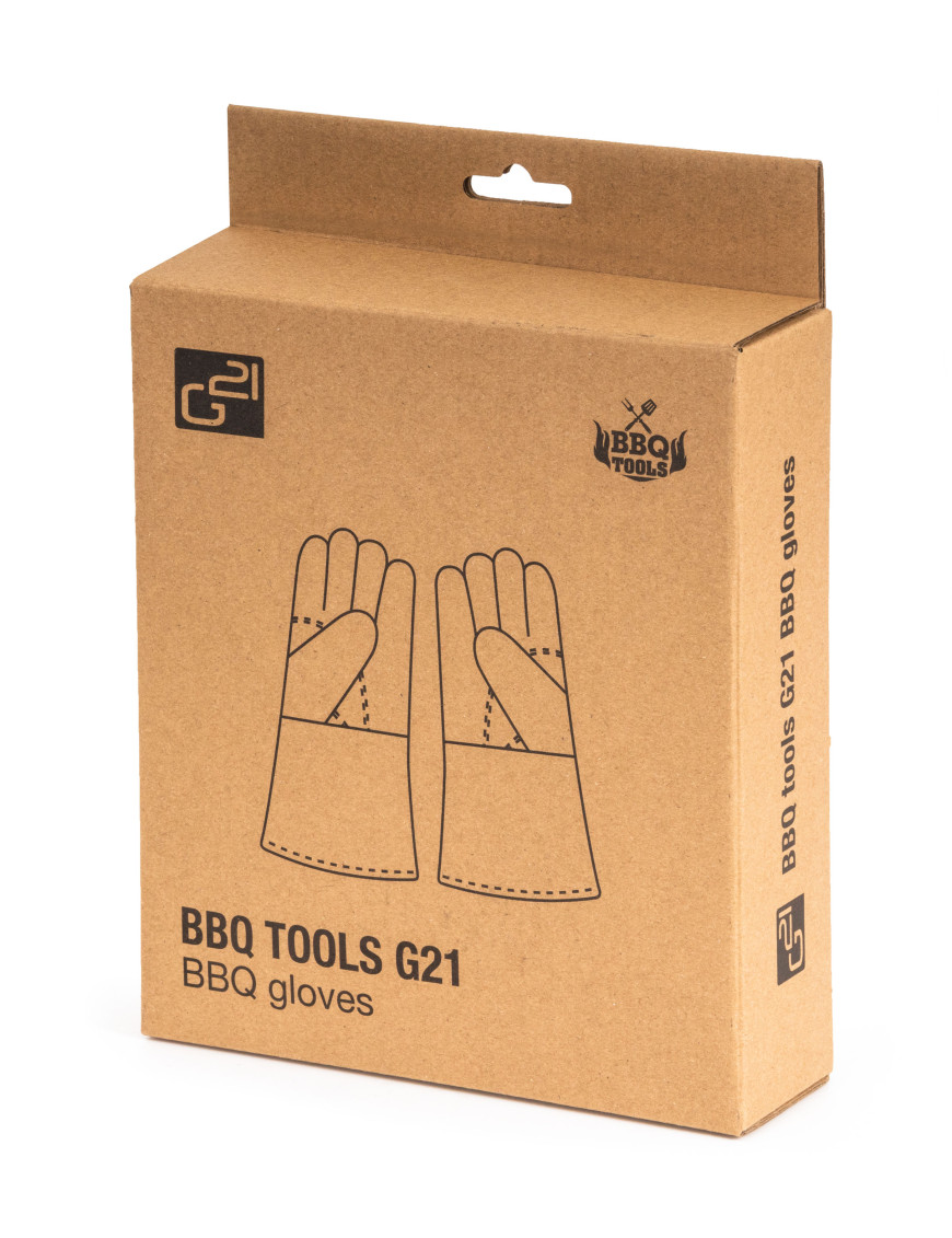 Grilovacie rukavice G21 sú vyrobené z pevnej kože, ktorá chráni ruky pred žiarom a plameňmi. Poskytujú istotu pri každom dotyku s horúcim roštom alebo riadom. Sú vhodné pre každého, kto chce grilovať bezpečne a štýlovo.