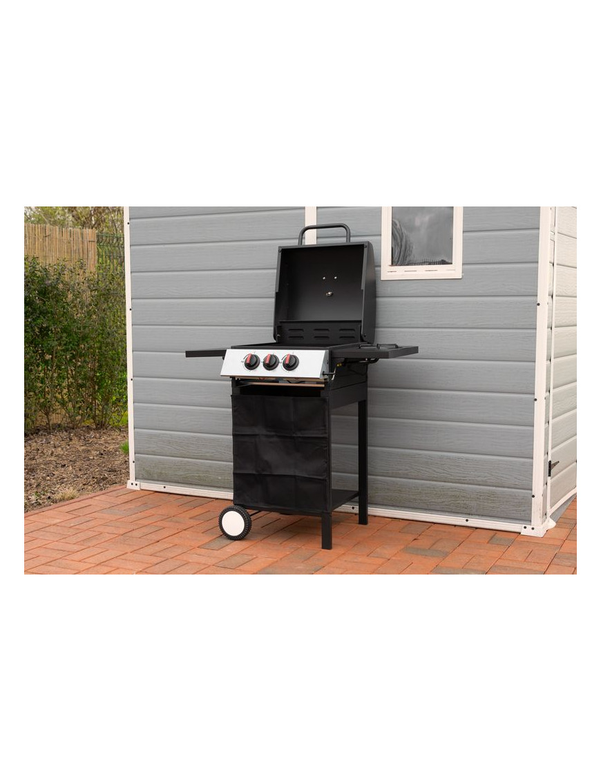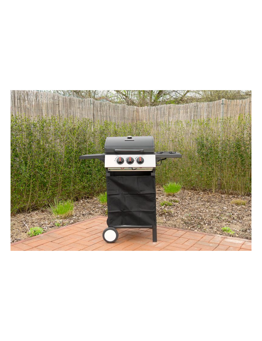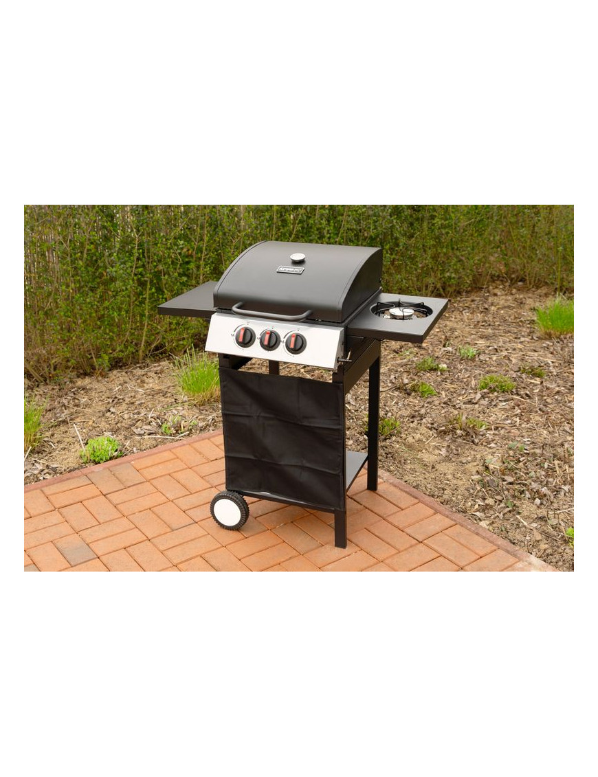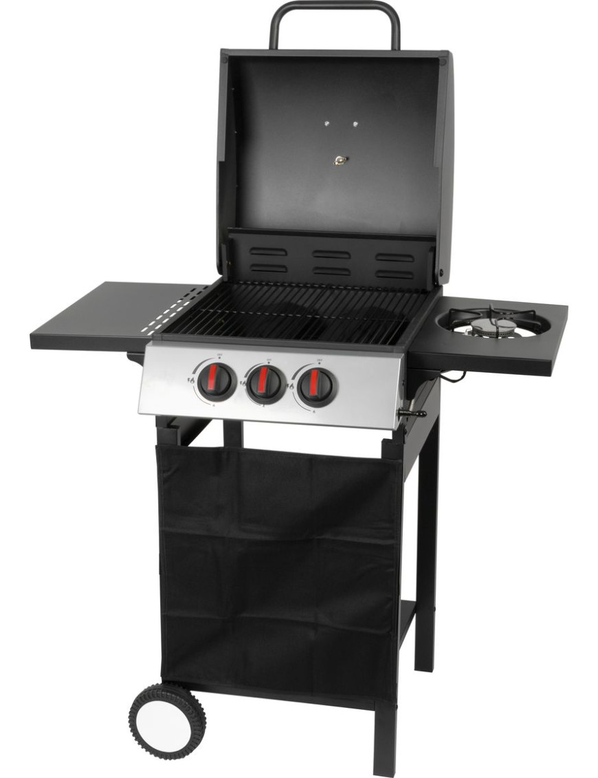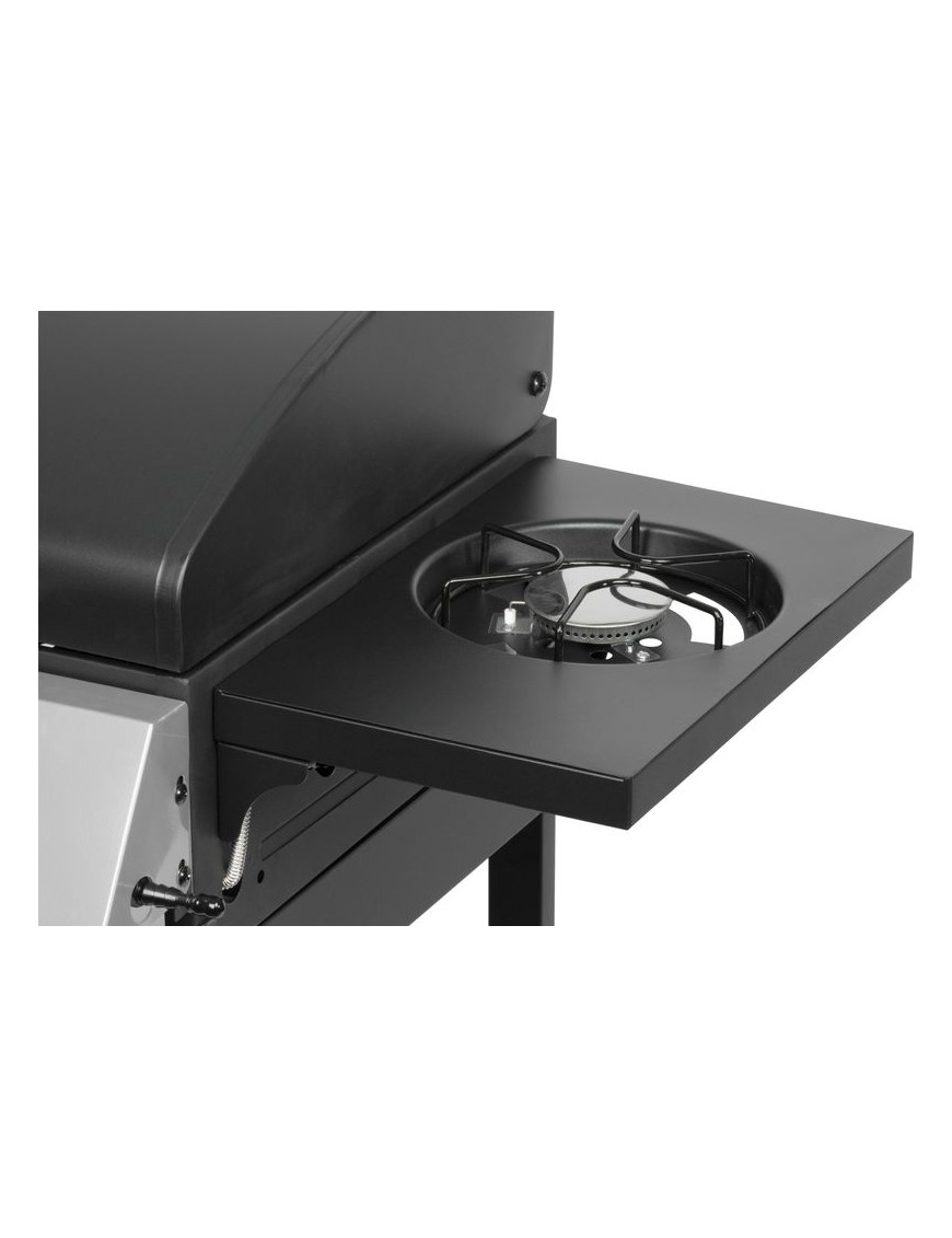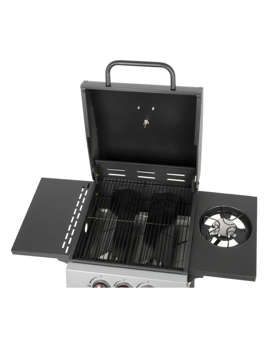 Gril je plynový, s dvomi horákmi pod vrchným kovovým krytom a jedným bočným horákom. Bočný horák je možné použiť pre jednoduché samostatné varenie. Na vrchnom kovovom kryte je umiestnený teplomer z nehrdzavejúcej ocele, vďaka ktorému nie je nutné neustále kontrolovať pripravované jedlo. Varná mriežka, ktorá sa nachádza pod krytom je vyrobená zo smaltovanej ocele, čím sa veľmi ľahko čistí, rovnako ako aj zvyšok povrchu. Pre funkčnosť je potrebné pripojenie štandardnej plynovej fľaše s hmotnosťou náplne do 11 kg. Po jej pripojení stačí jednoducho otočiť gombíkom pre horák, ktorý chcete rozohriať. Rozmery grilu sú 97 x 60 x 100 cm a jeho hmotnosť je 17,5 kg. Pre jednoduchší presun sa na spodných nohách nachádzajú dve kolieska. Po umiestnení plynovej fľaše je potrebné skontrolovať pripojenie. Umiestnenie grilu je nutné výhradne vo vonkajších priestoroch.