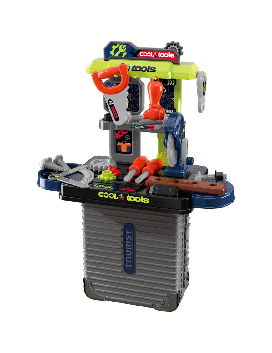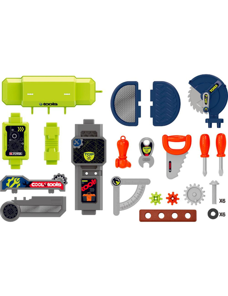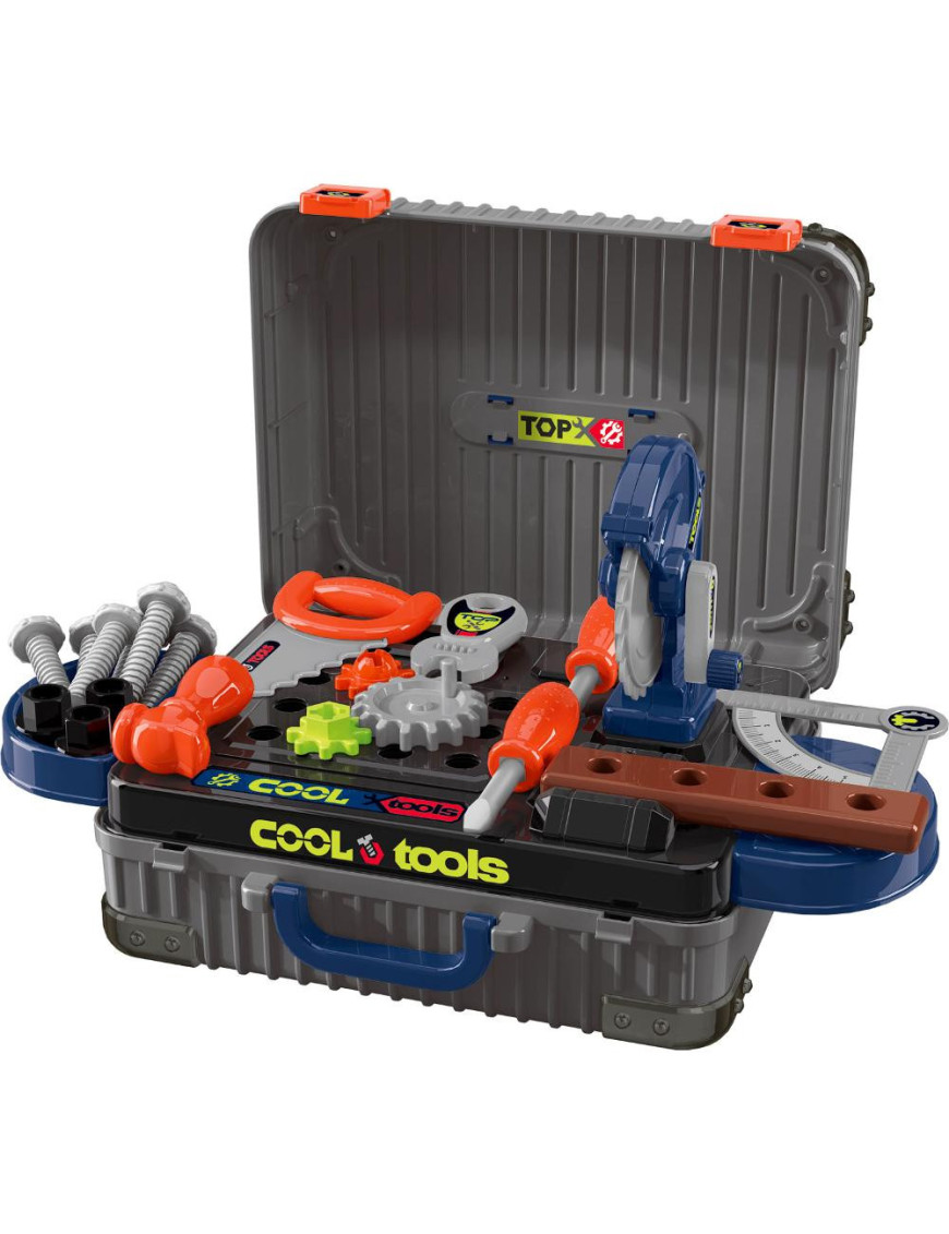 Dielňa v kufríku obsahuje všetko, čo malí majstri potrebujú – 23 kusov náradia a doplnkov, s ktorými môžu montovať, opravovať aj tvoriť. Všetky časti sú navrhnuté tak, aby sa deťom dobre držali a boli bezpečné.