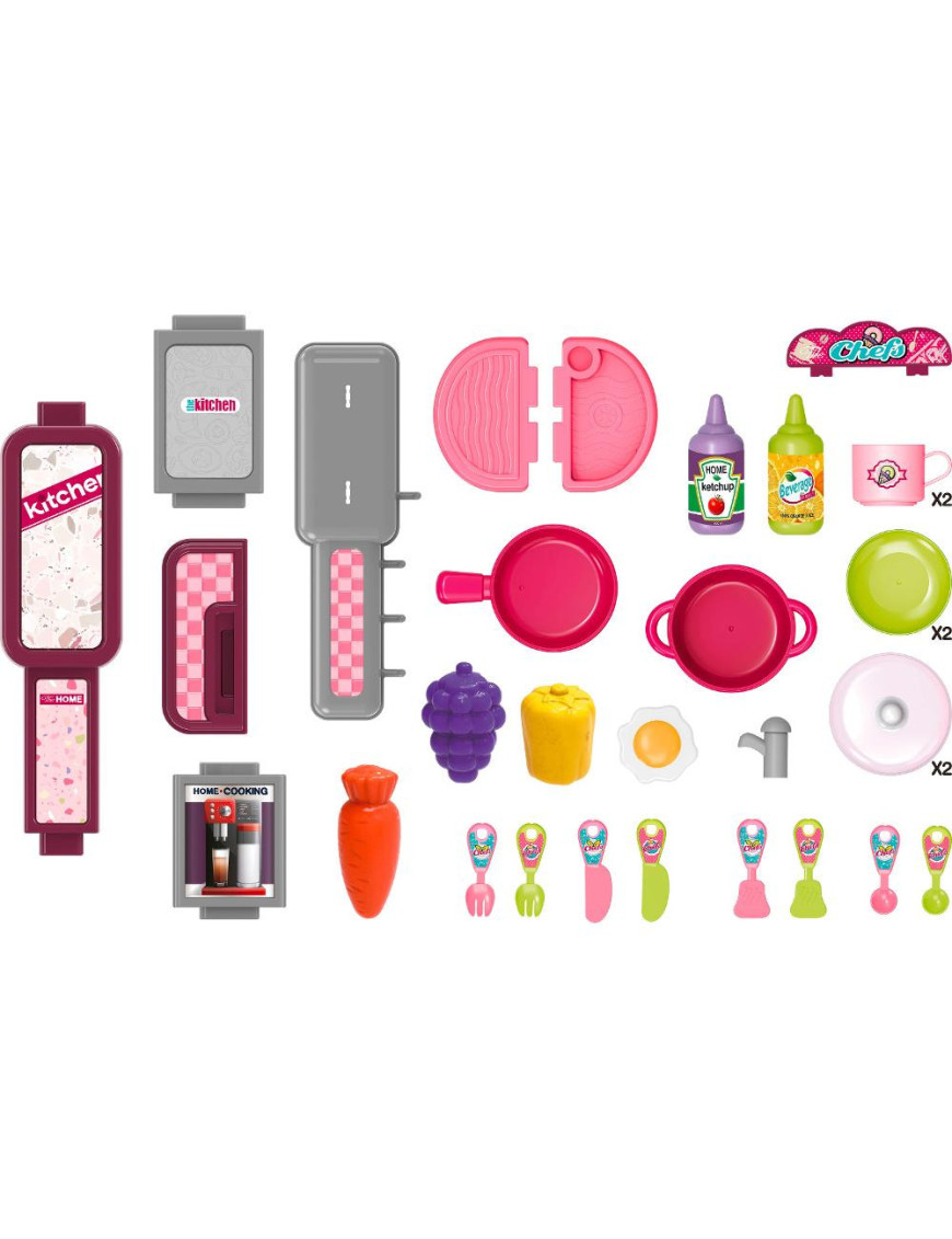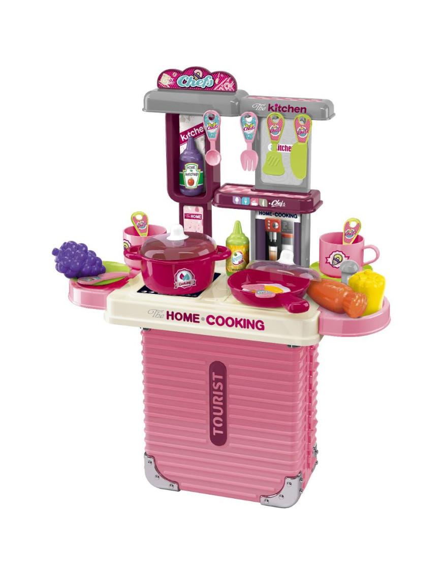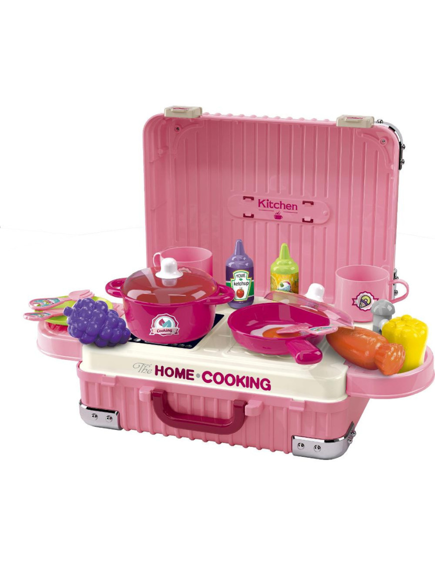 Kuchynka v kufríku obsahuje všetko, čo malé kuchárky a kuchári potrebujú – 22 kusov kuchynského náradia a doplnkov, s ktorými sa môžu hrať na varenie. Všetky súčasti sú navrhnuté tak, aby sa deťom dobre držali a boli bezpečné.