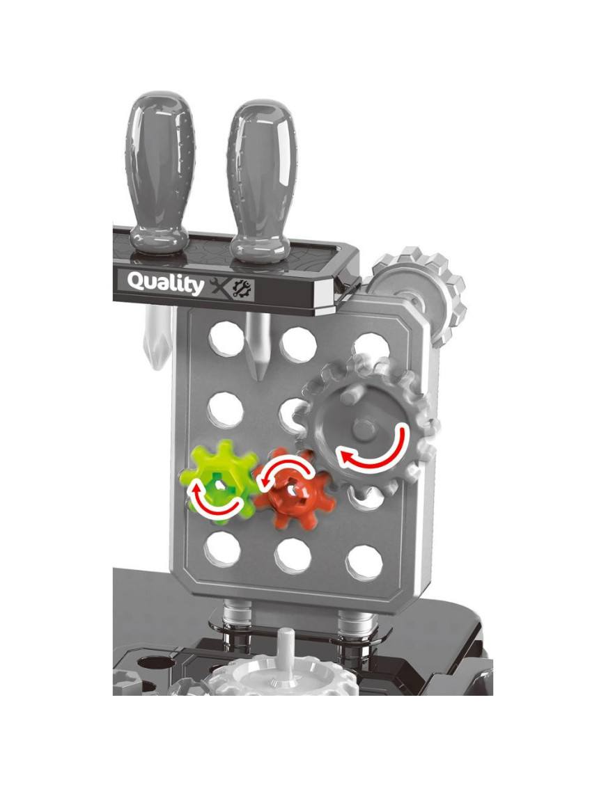 Dielňa v kufríku obsahuje všetko, čo malí aj malé šikovníci potrebujú – 29 kusov dielenského náradia a doplnkov, s ktorými môžu montovať, opravovať aj tvoriť. Všetky súčasti sú navrhnuté tak, aby sa deťom dobre držali a boli bezpečné.