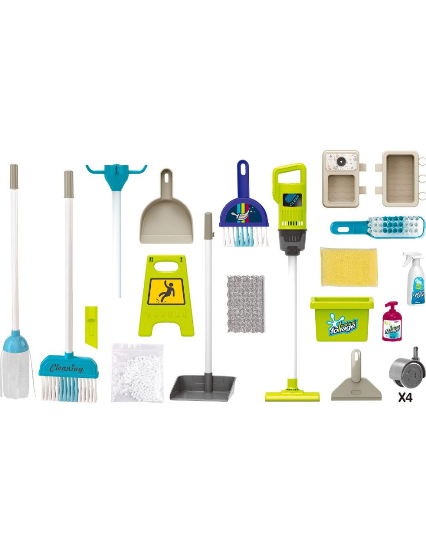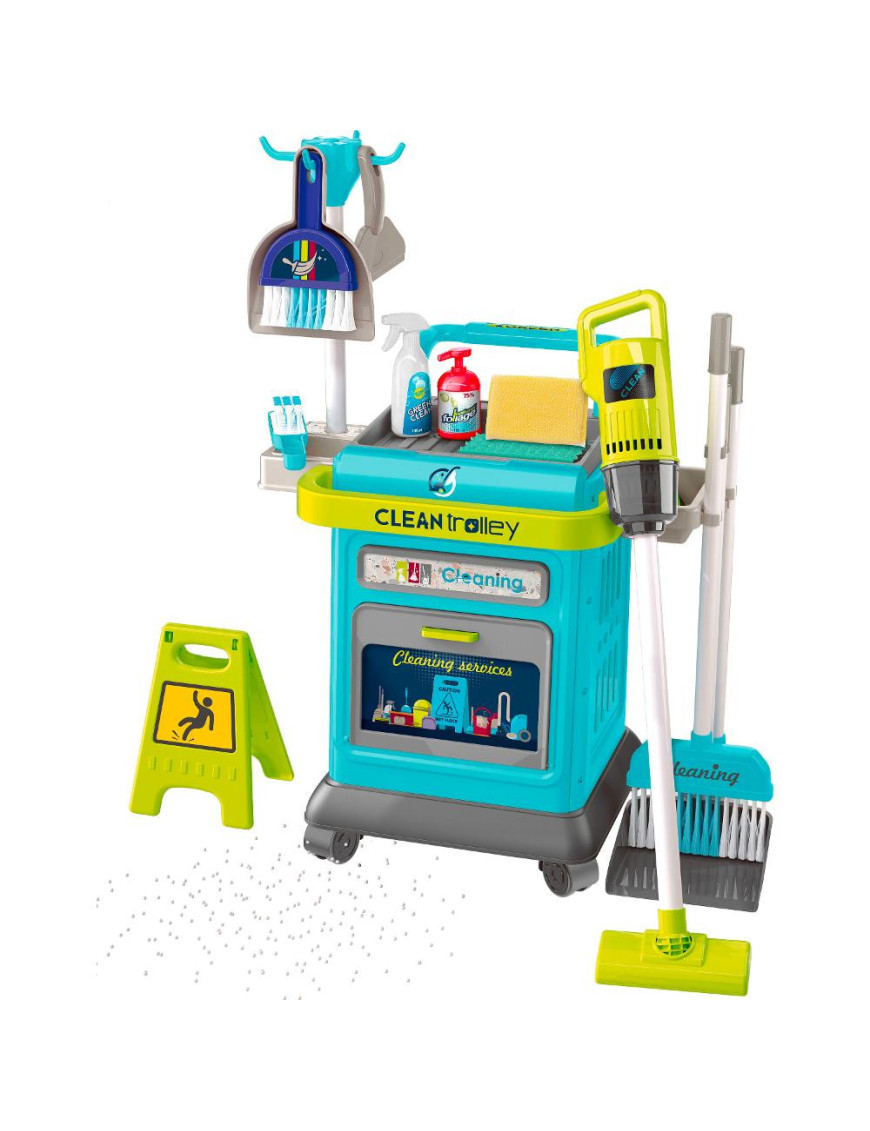 Upratovací vozík na kolieskach obsahuje všetko, čo malí pomocníci potrebujú na upratovanie. Nájdete v ňom rôzne čistiace pomôcky a doplnky, s ktorými sa môžu hrať na upratovačov.