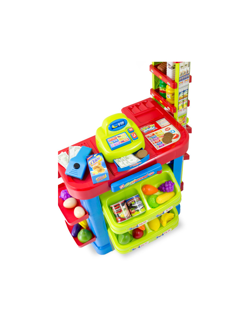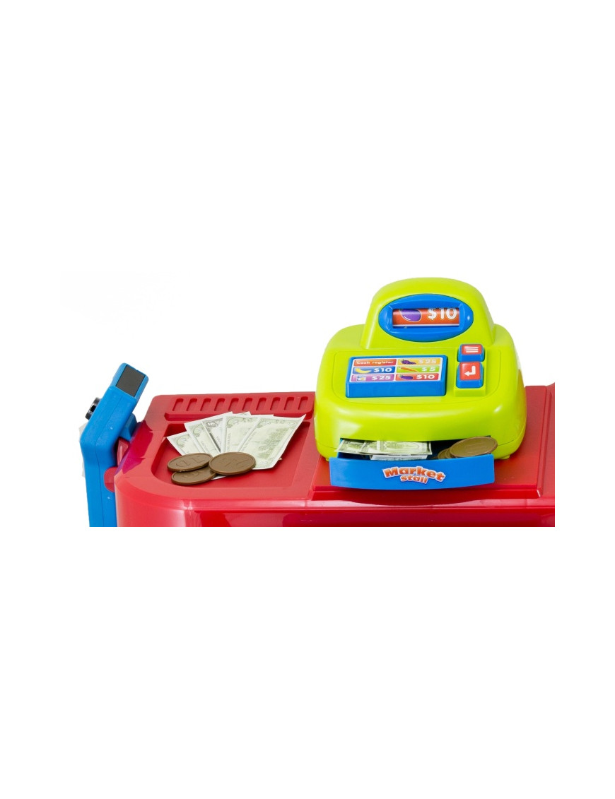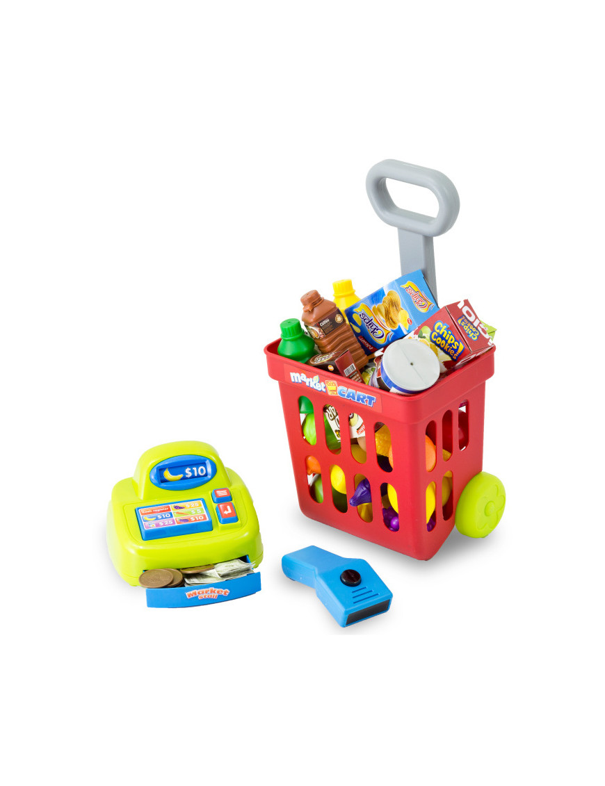 Chcete svoje dieťa naučiť hospodáriť s peniazmi, ale ozajstné mu ešte zveriť nechcete? Tak vyskúšajte túto hru na predavača a zákazníka. Súčasťou je totiž samozrejme pokladňa s papierovými aj kovovými peniazmi, čítačka čiarového kódu (s reálnym zvukom) a pre zákazníka košík na kolieskach.