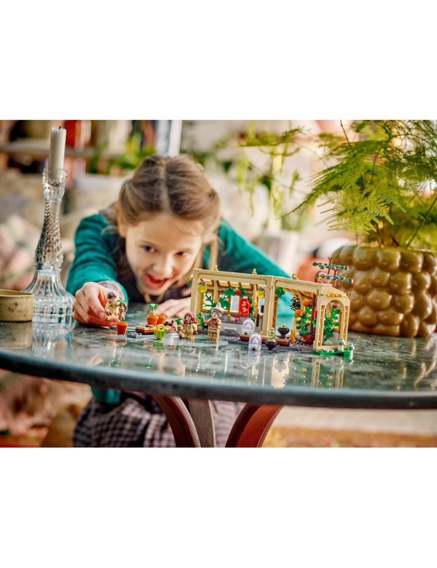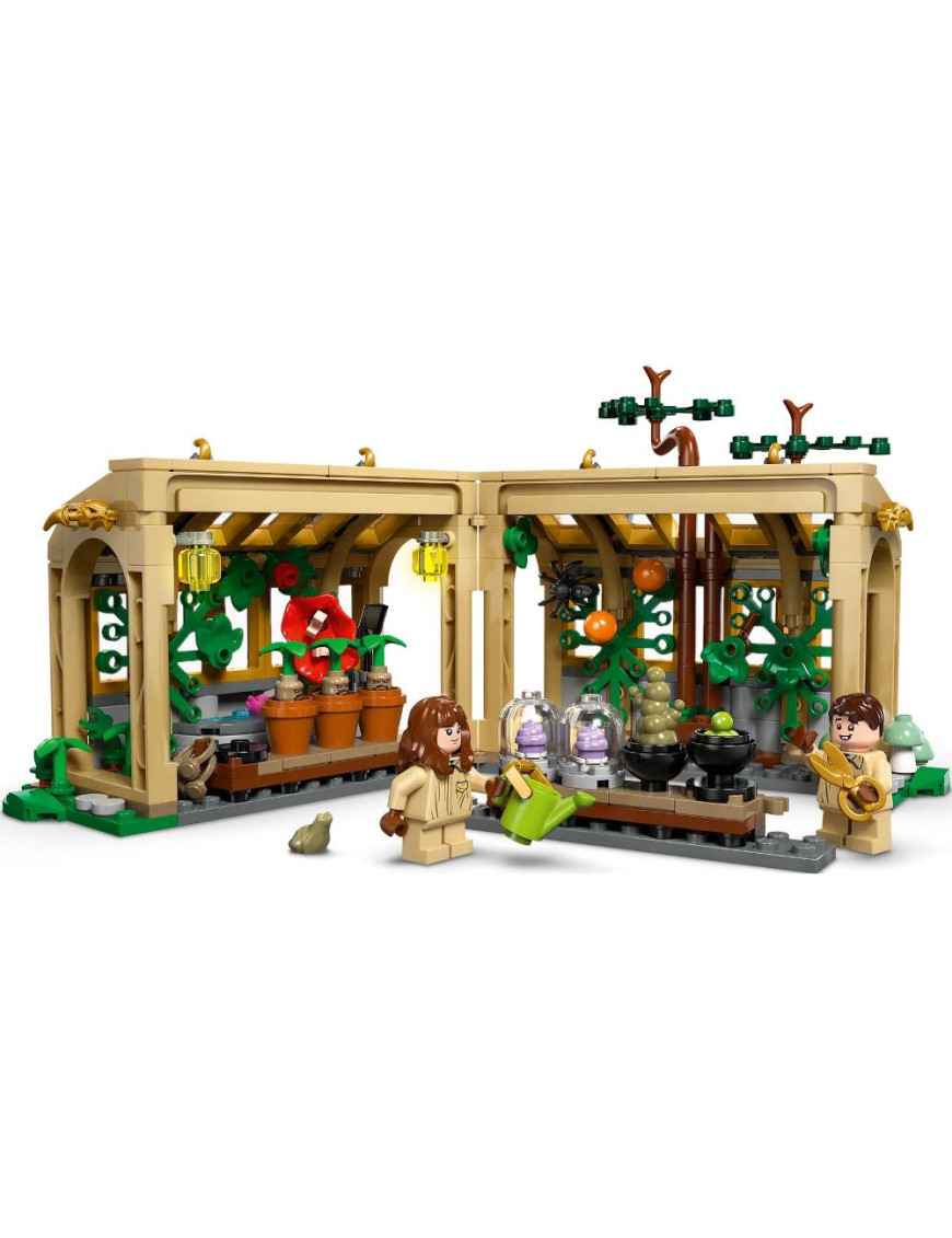 Vo vnútri nájdete 2 odnímateľné stoly plné magických rastlín, strom trčiaci cez „rozbité" okno a záhradkárske doplnky