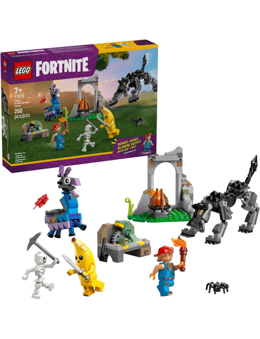 Inšpirujte deti k nápaditým hrám so stavebnicou LEGO Fortnite Peely a Sparkplug a ich táborisko pre deti od 7 rokov