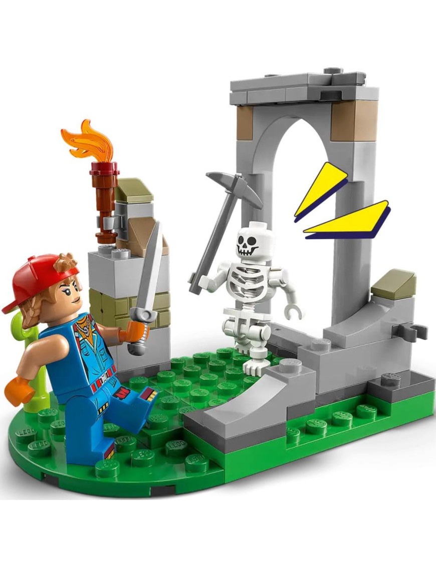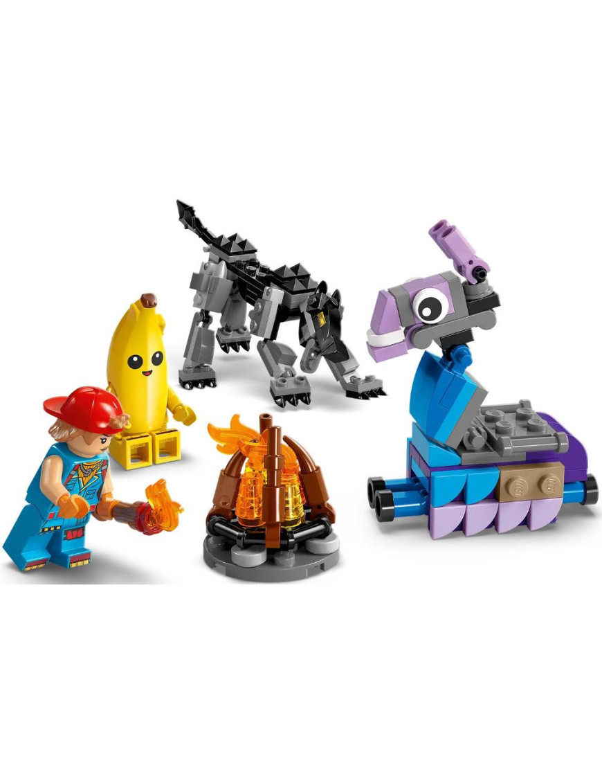V modeli nájdete rovnaké úvodné výzvy, ktoré hráči poznajú z videohry LEGO® Fortnite Odyssey, a stavebnica obsahuje aj táborák, pracovný stôl a ruiny
