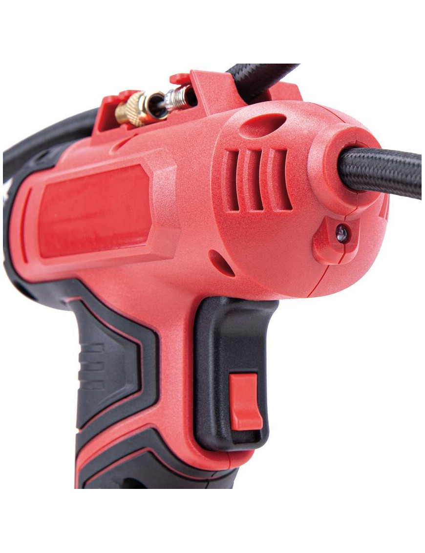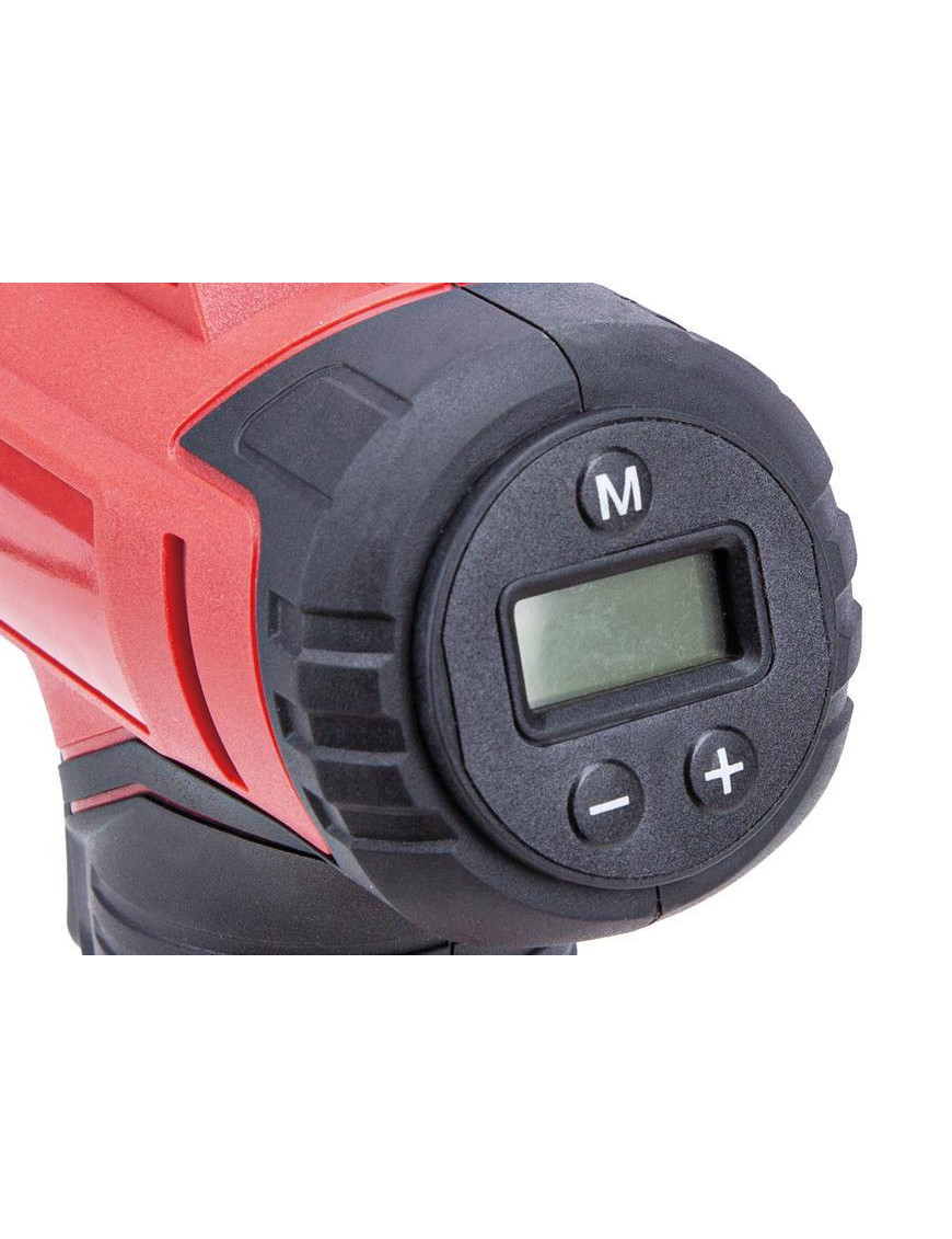 • Podsvietený displej a LED svietidlo umožňujú používanie akumulátorového kompresora aj za zníženej