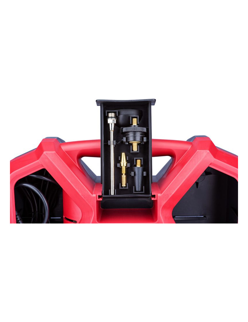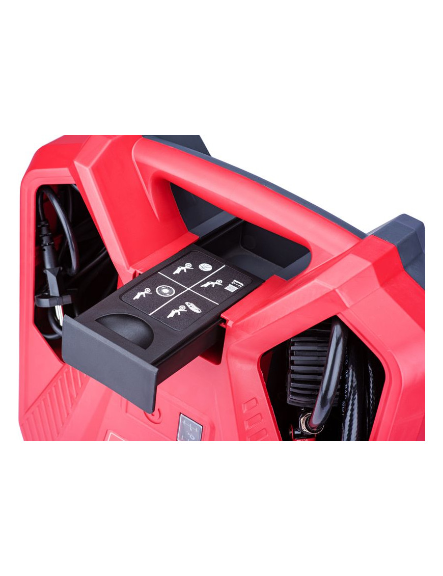 Všetko príslušenstvo, vrátane elektrického kábla, kvalitnej 3 m tlakovej hadice, pištole s manometrom a rôznych koncoviek je šikovne ukryté vnútri kompresora, takže sa Vám nič nestratí. Pohodlné madlo Vám uľahčí prenášanie. Kompresor je vybavený najmodernejším motorom s bezolejovou technológiou. Kontrola oleja, jeho dopĺňanie alebo výmena tak vôbec nie sú potrebné a kompresor je tak vždy pripravený odviesť svoju prácu.