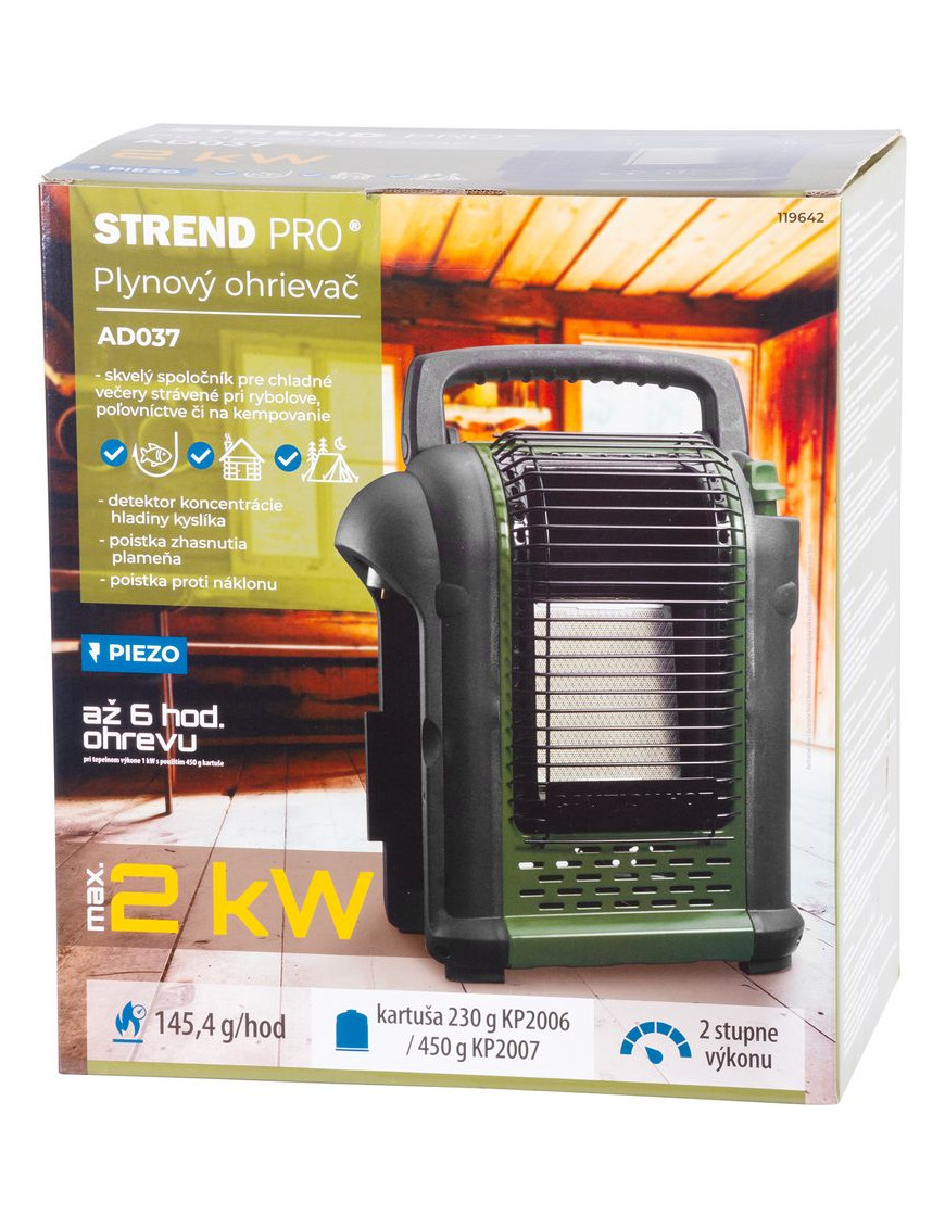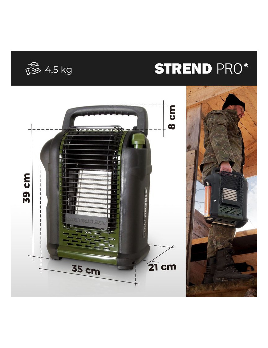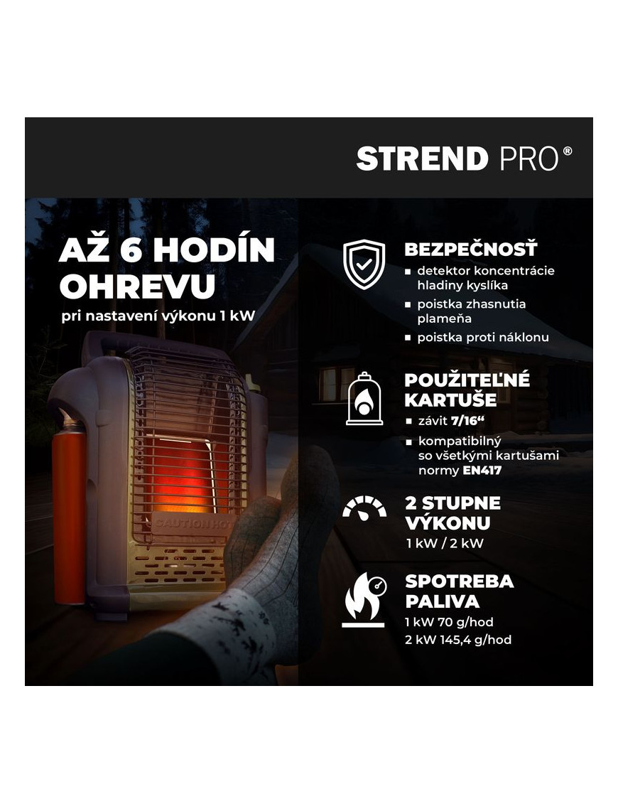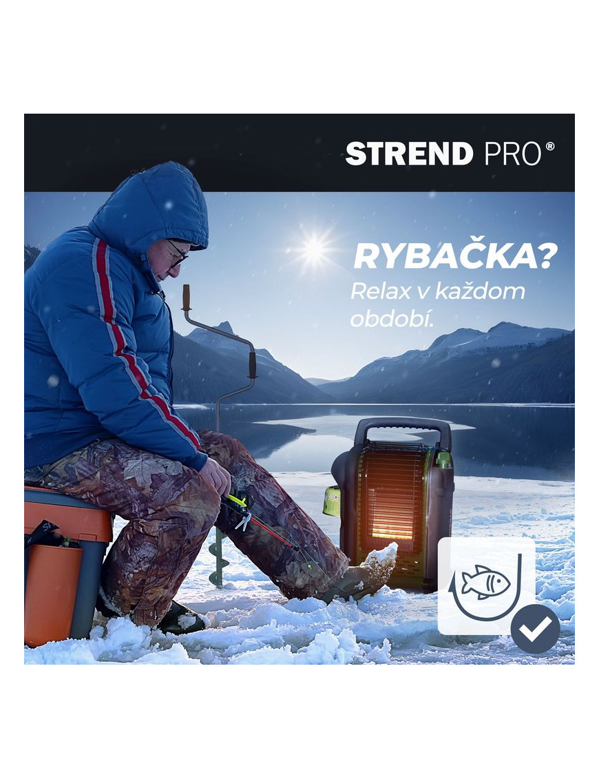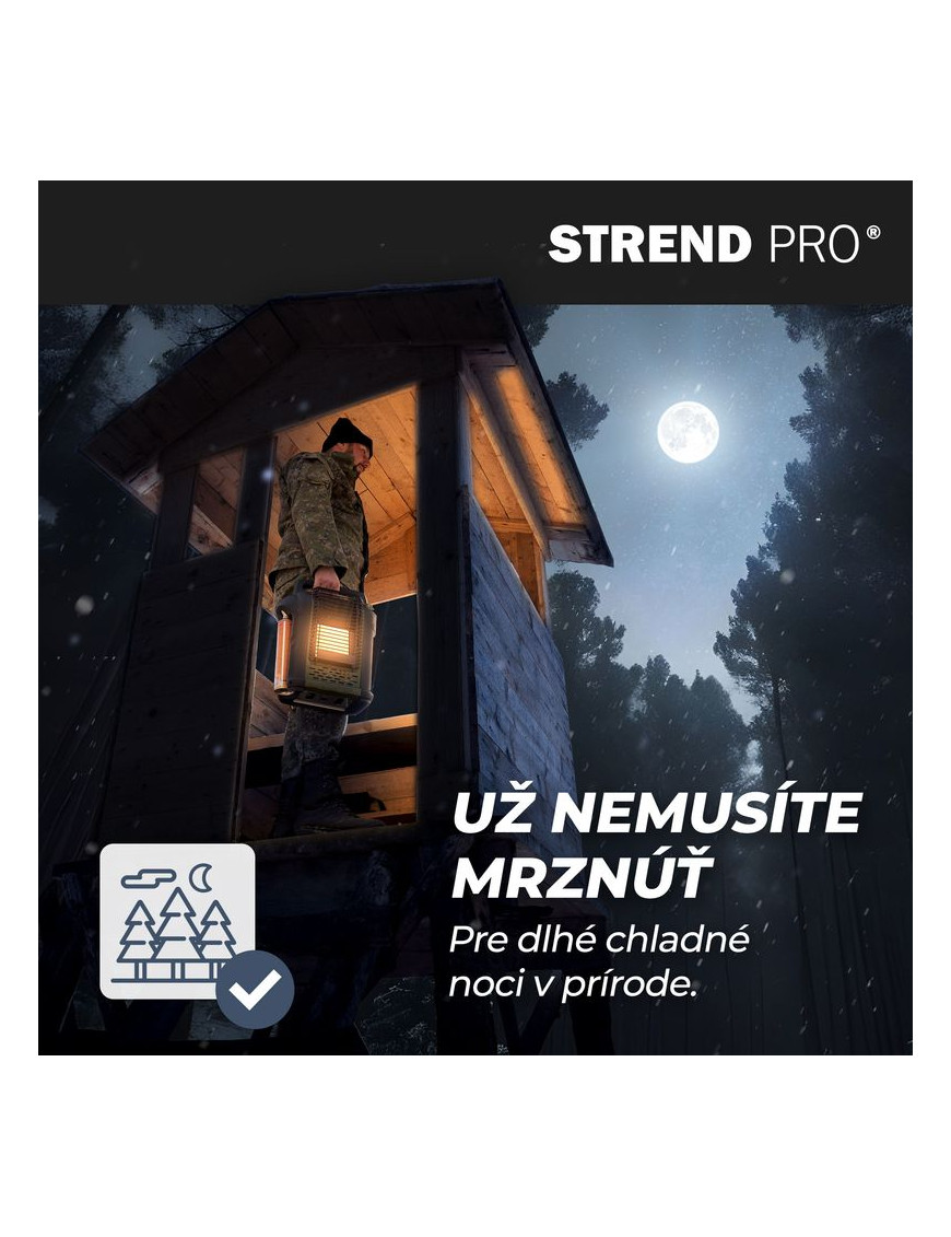 Plynový ohrievač Strend Pro je skvelý spoločník pre chladné večery strávené pri rybolove, poľovníctve či kempovaní. Disponuje 2 stupňami ohrevu s tepelným výkonom 1 kW a 2 kW.