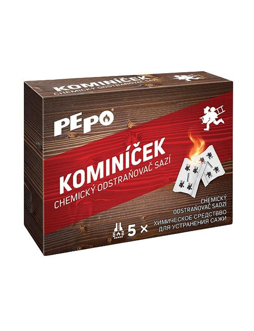 Kominíček je chemický prípravok na odstránenie sadzí z komínov a dymovodov. Používanie odstraňovaču sadzí pôsobí preventívne proti vzniku požiarov spôsobených vznietením sadzí v dymovodoch. Pri použití čističa sa sadze menia na kysličník uhličitý. Odporúčané dávkovanie pre lokálne ohrievače, krbové kachle a kotle na etážové vykurovanie je 1 sáčok, pre kotle ústredného vykurovania 2 sáčky. Postup čistenia opakujte podľa potreby. Použitie pri dávkovaní do ohrievačov: Vrecúško vhoďte na rozžeravené palivo a ohrievač uzavrite. Zabezpečíte tak, aby účinná látka neunikala a neznížil sa tak čistiaci účinok.