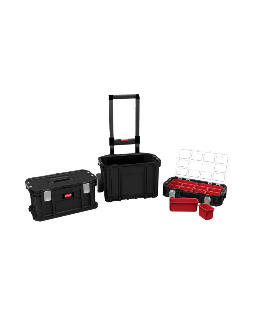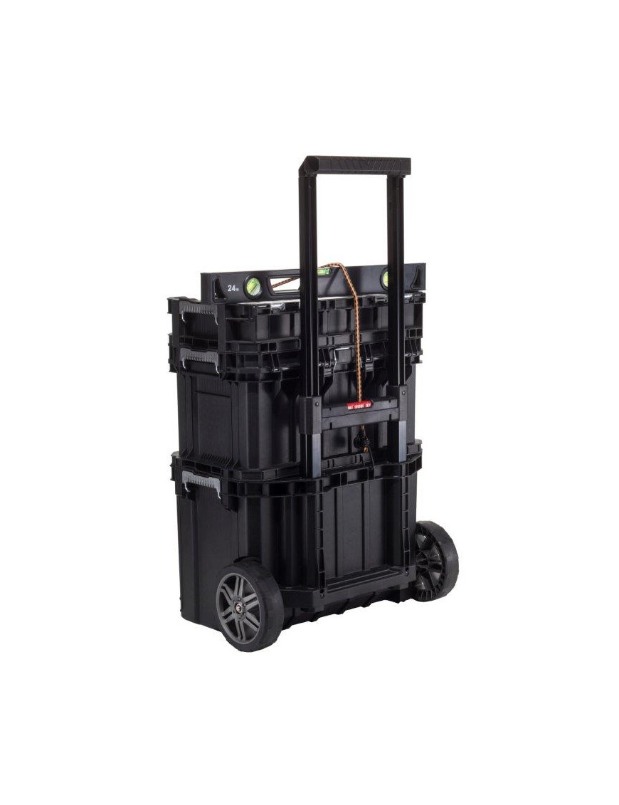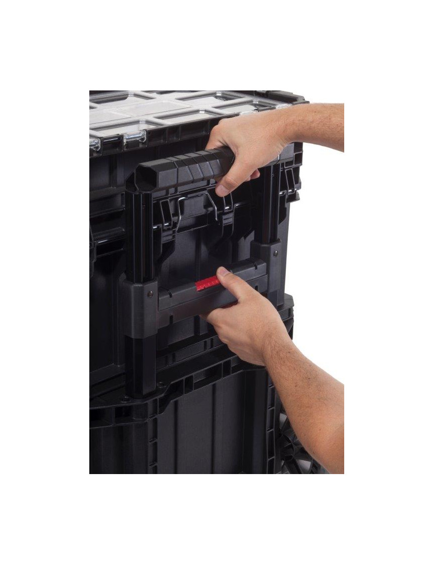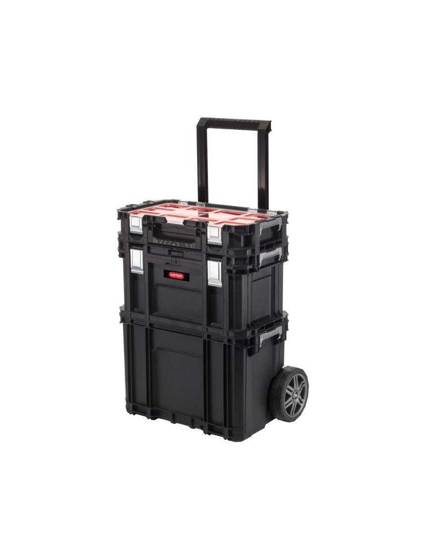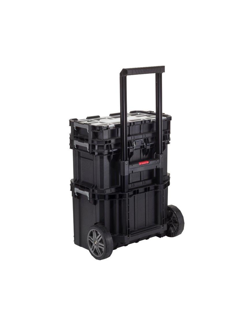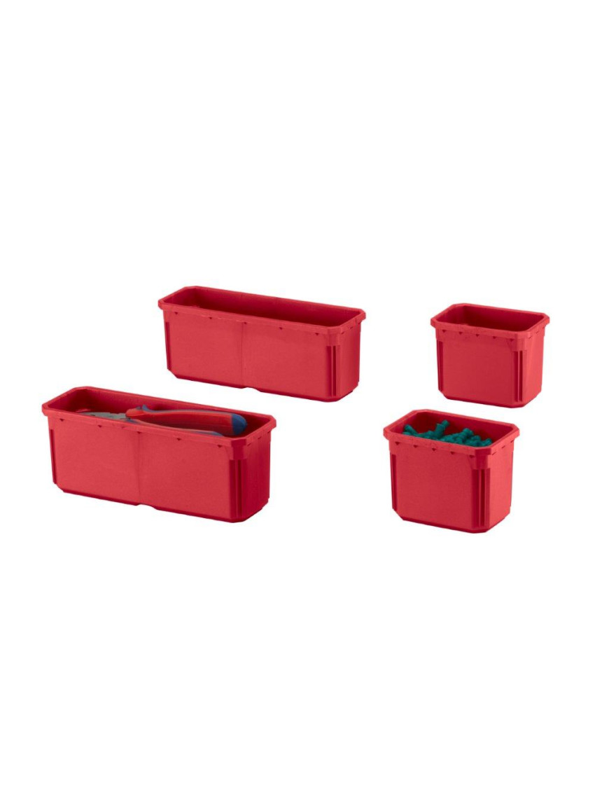 Náradie si bezpečne uložíte do vnútornej časti boxu alebo priamo do vozíka. Okrem toho určite naplníte aj organizér. Ten uchytíte na hornú časť boxu alebo ho použijete samostatne. Organizér je navyše vybavený vynímateľnými priehradkami, do ktorých uskladníte drobné súčiastky. Vďaka priehľadnému veku získate dokonalý prehľad o uložených predmetoch.