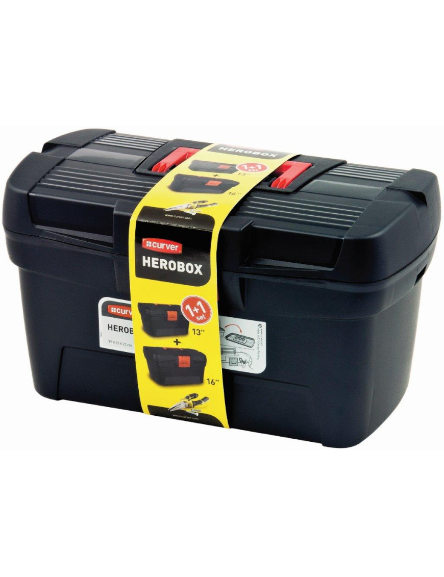 Sadu boxov Keter HEROBOX 16" + 13" využijete na uskladnenie dielenského náradia, ako sú kliešte, kľúče, kladivá, skrutkovače a ďalšie remeselné pomôcky. Set sa skladá zo 2 boxov – jeden s veľkosťou 16" a druhý 13". Obsahujú vrchnú vyberateľnú tácku na odkladanie malých pomôcok a súčiastok. S týmito praktickými boxmi máte všetko po ruke, kedykoľvek potrebujete.