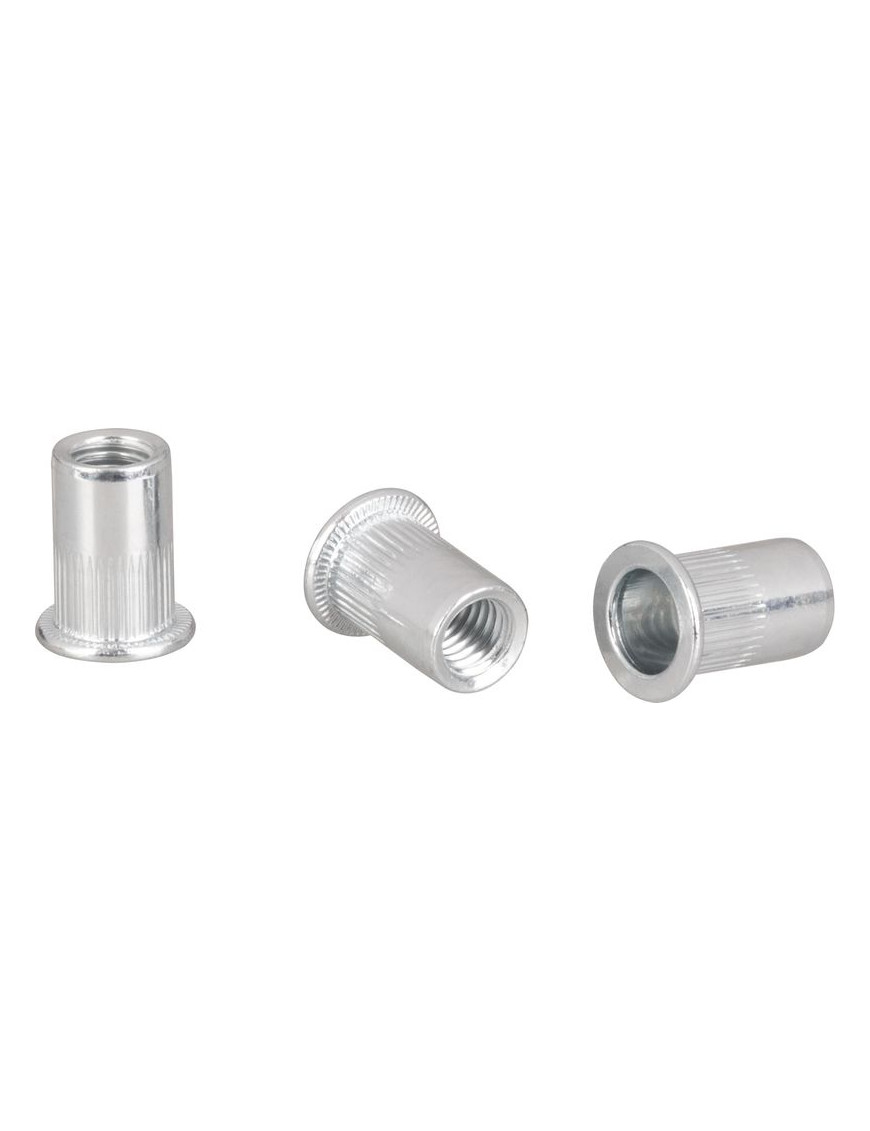 Maticový nit M8 s plochou hlavou vyrobený z uhlíkovej ocele. Určený je predovšetkým do tenkých materiálov kde treba vytvoriť závit pre spoj so skrutkou.