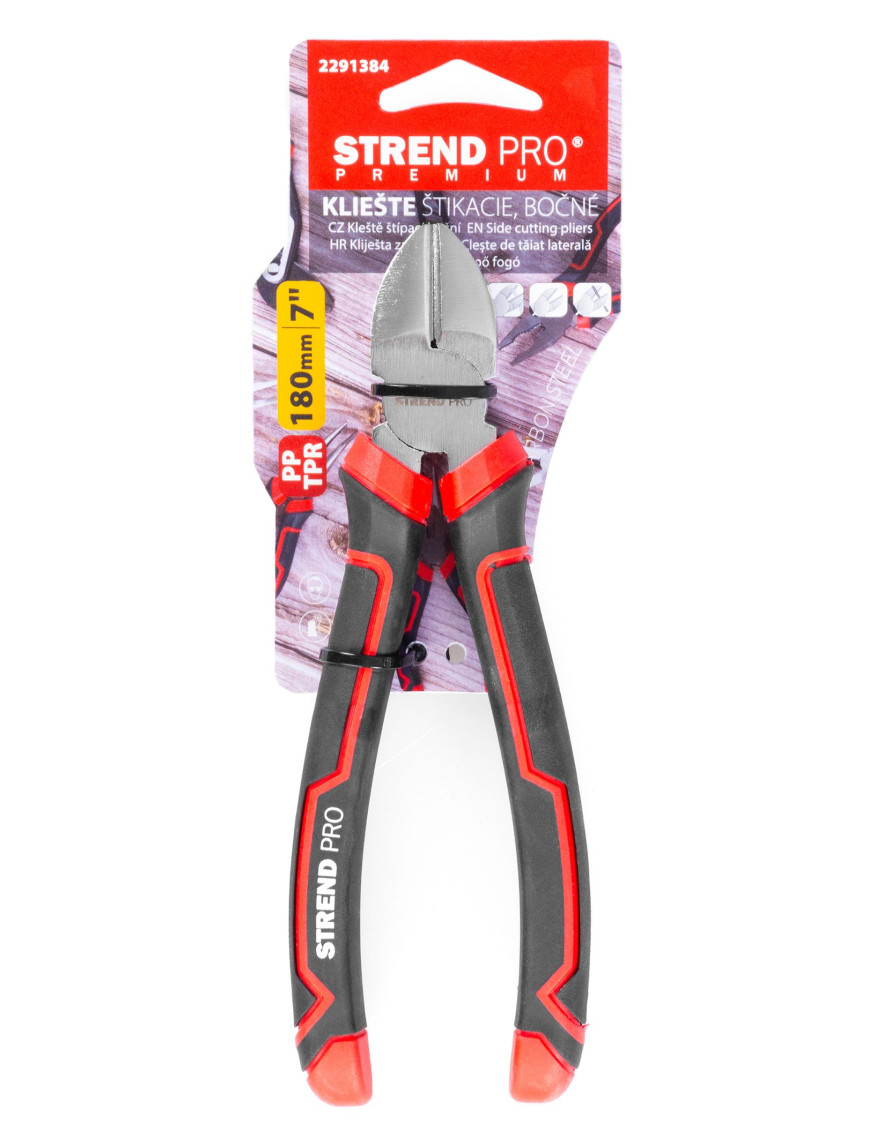 Štikacie, bočné kliešte Strend Pro Premium v prémiovej kvalite by nemali chýbať vo vašej dielni. Slúžia na štikanie mäkkých a tvrdých drôtov. Predĺžený tvar hlavy slúži na použitie pre ťažko prístupné miesta. Sú vyrobené z uhlíkovej ocele tvrdosti 55, čo zaručuje ich dlhú životnosť. Rukoväte s ergonomickými rúčkami potiahnutými TPR a protišmykovým drážkovaním. Celková dĺžka: 180 mm / 7", rozmer rukoväte: 135 mm, rozmer čepele: 45 mm.
