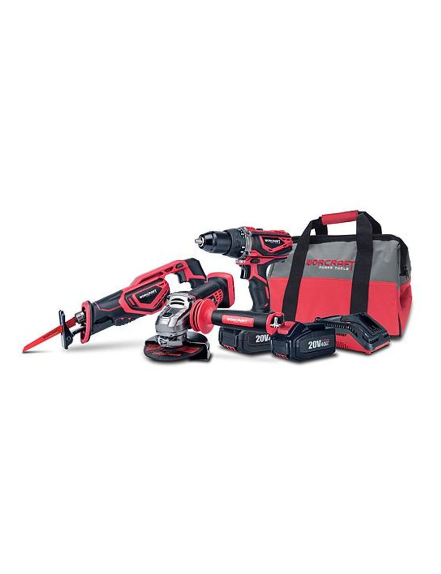Set Worcraft WSET-02, S20Li ShareSYS, chvostová píla, uhlová brúska, skrutkovač, nabíjačka, 2x 4.0 Ah akumulátor + brašňa