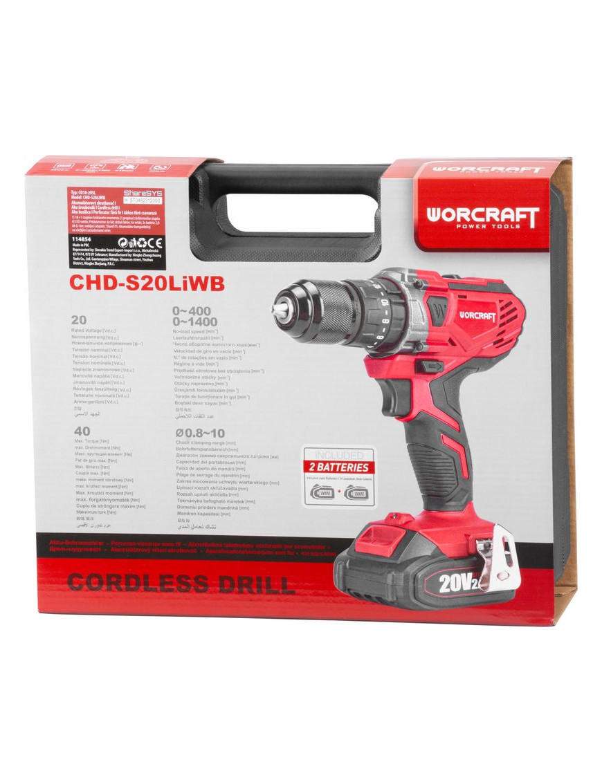 Skrutkovač Worcraft CHD-S20LiWB ShareSYS, 20V, 2x Li-ion 2.0 Ah, bezuhlíkový, SET v kufri