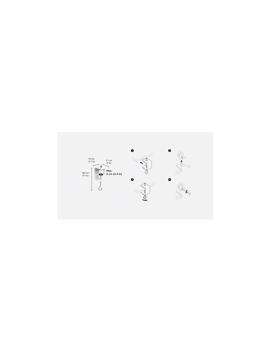 BENQ WiT, Stolová svorka, biela (5J.W3P14.002) - Pomocou tejto svorky ľahko pripevníte lampu BenQ WiT na okraj stola. Držiak je možné inštalovať na dosku s hrúbkou maximálne 6 cm. Pogumované konce zaistia lepšiu fixáciu a zamedzia poškodeniu povrchu stola. Jednoduchá montáž aj demontáž, bez nutnosti použiť náradie.