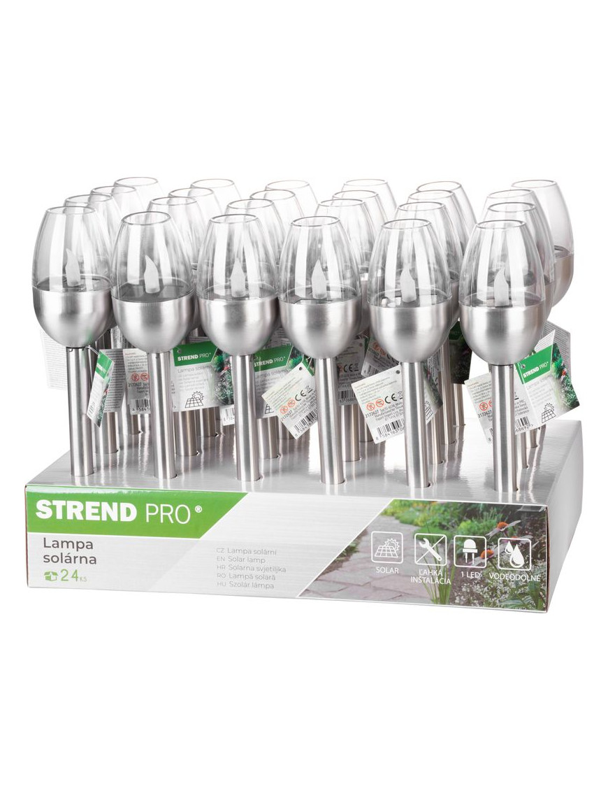 Lampa Strend Pro Candle, solárna, 1x LED, nerez, 6x28 cm, Sellbox 24 ks