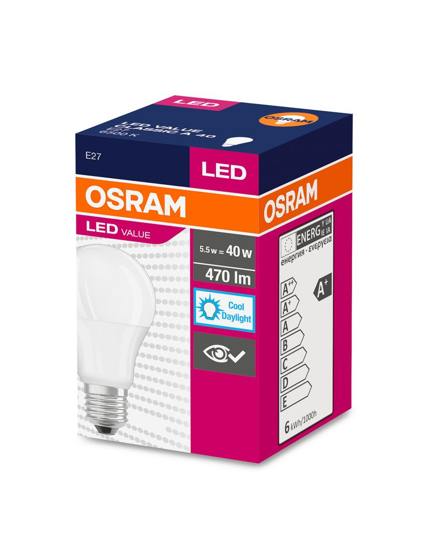 Žiarovka OSRAM® LED FR 040 (ean1011) non-dim, 4,9W/865 E27 6500K Value CLASSIC A