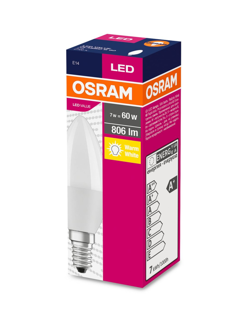 Žiarovka OSRAM® LED FR 060 (ean2915) non-dim, 7,5W/827 E14 2700K Value CLASSIC B