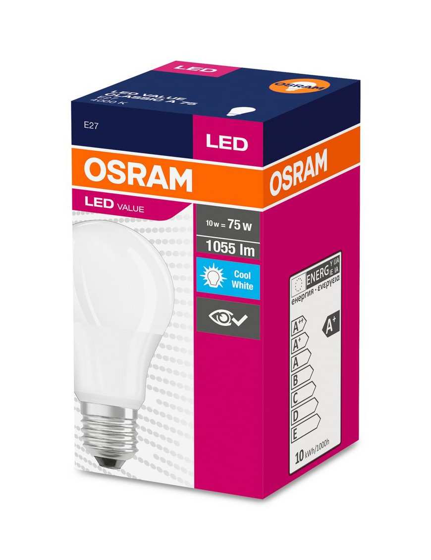 Žiarovka OSRAM® LED FR 075 (ean3404) non-dim, 10W/840 E27 4000K Value CLASSIC A