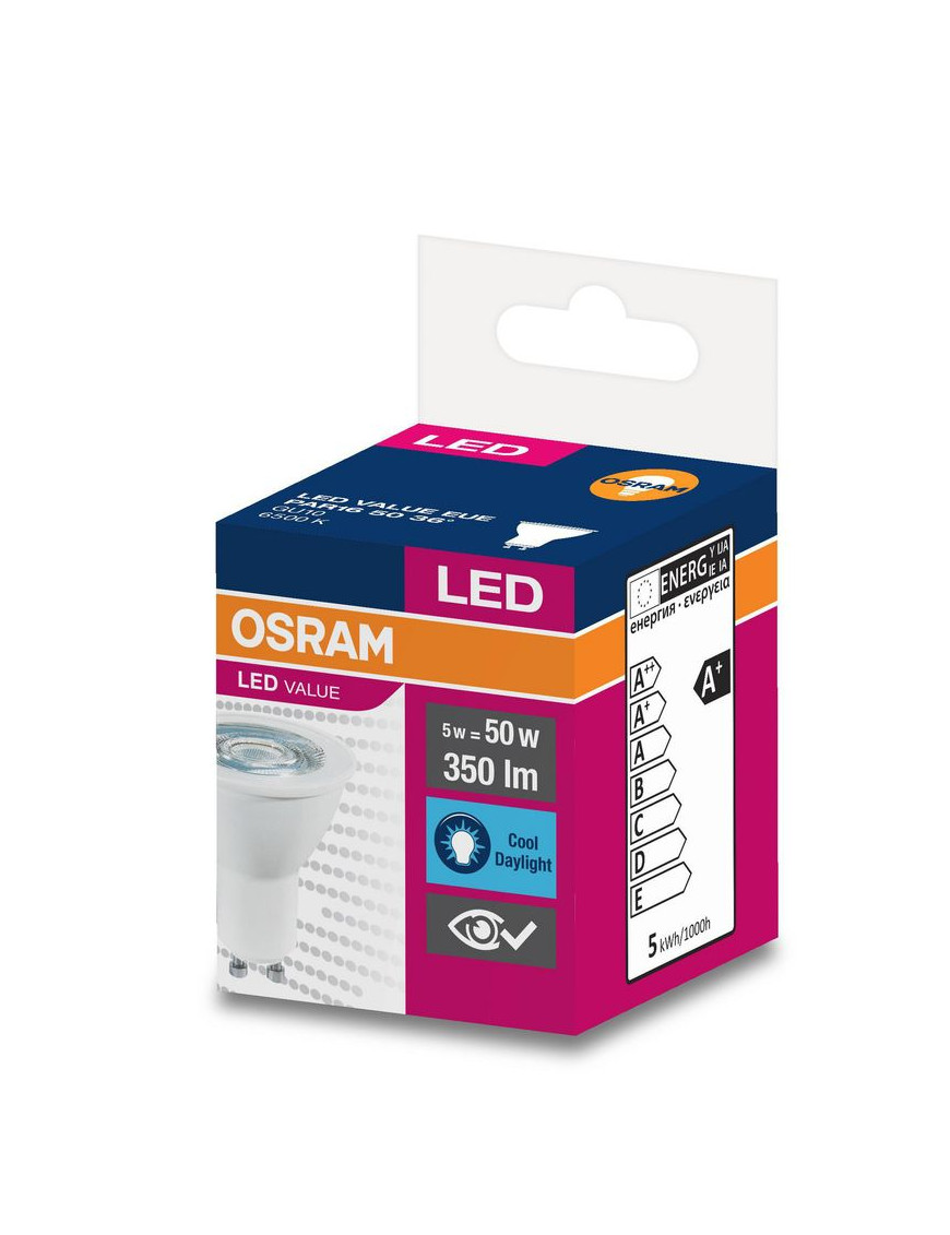 Žiarovka OSRAM® LED GU10 50 (ean8647) 36° 4,5W/6500K Value PAR16