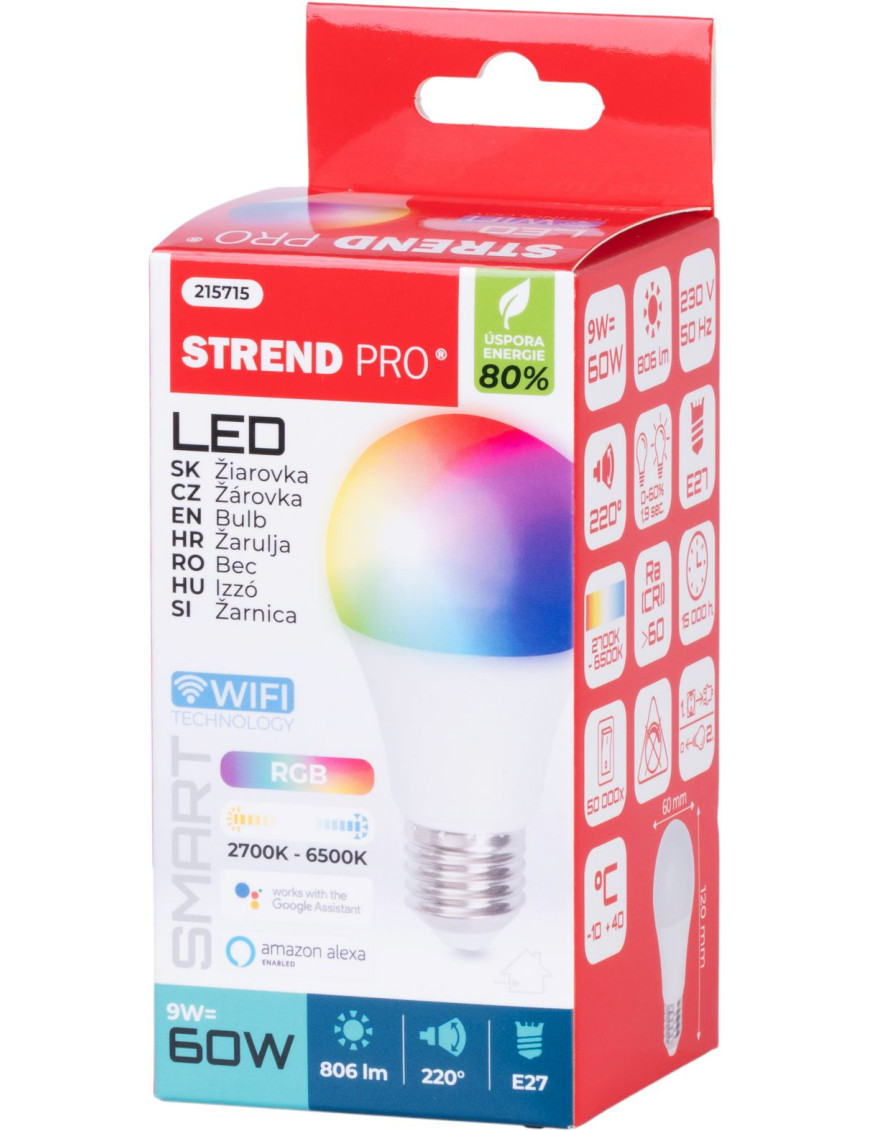 Žiarovka Strend Pro Smart, wifi, mení farby RGB, 9 W, E27