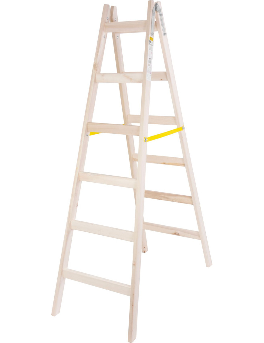 Dvojitý drevený rebrík Strend Pro so 6 priečkami sa vyznačuje pevnou a stabilnou konštrukciou, ktorá zaručuje bezpečnú prácu vo výške. Je vyrobený z impregnovaného dreva a obsahuje aj kovové pozinkované časti vysokej kvality. Skvelou funkciou sú kolmé priečky smerom k zemi pre ešte bezpečnejšie využívanie rebríka. Nylónový pás zamedzuje rozovretiu rebríka. Disponuje praktickým háčikom na zavesenie vedra. Pre domáce použitie. V balení nájdete grátis lepidlo na drevo - ponuka platí do vypredania zásob ! Nosnosť je 150 kg. Vyrobené v EÚ.