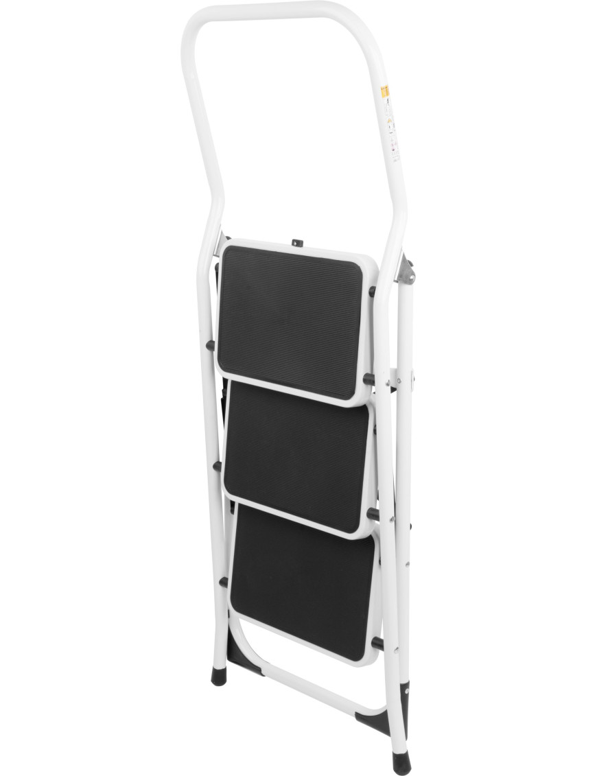Schodíky Strend Pro sú vyrobené z ocele najvyššej kvality. Aj napriek tomu, že schodíky boli vyrobené z ocele sú ľahké, ľahko sa skladujú a prenášajú. Špeciálne plastové nožičky zabezpečujú stabilitu práce aj na nerovnom povrchu. Špeciálna protišmyková vrstva na stupienkoch chráni proti pošmyknutiu. Schodíky sú vhodné na rôzne typy prác v domácnosti. Určené na neprofesionálne použitie. Šírka nášľapnej časti: 38 cm. Nosnosť: max. 150 kg.