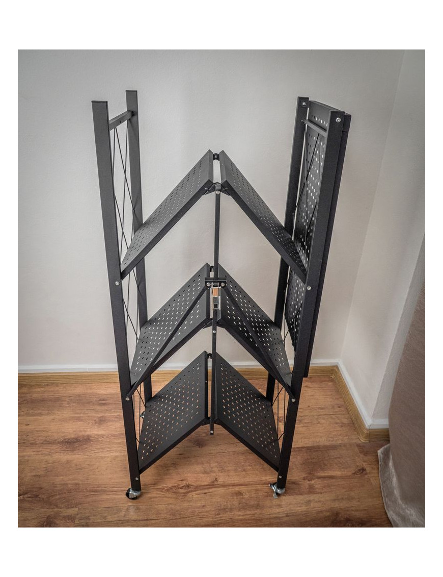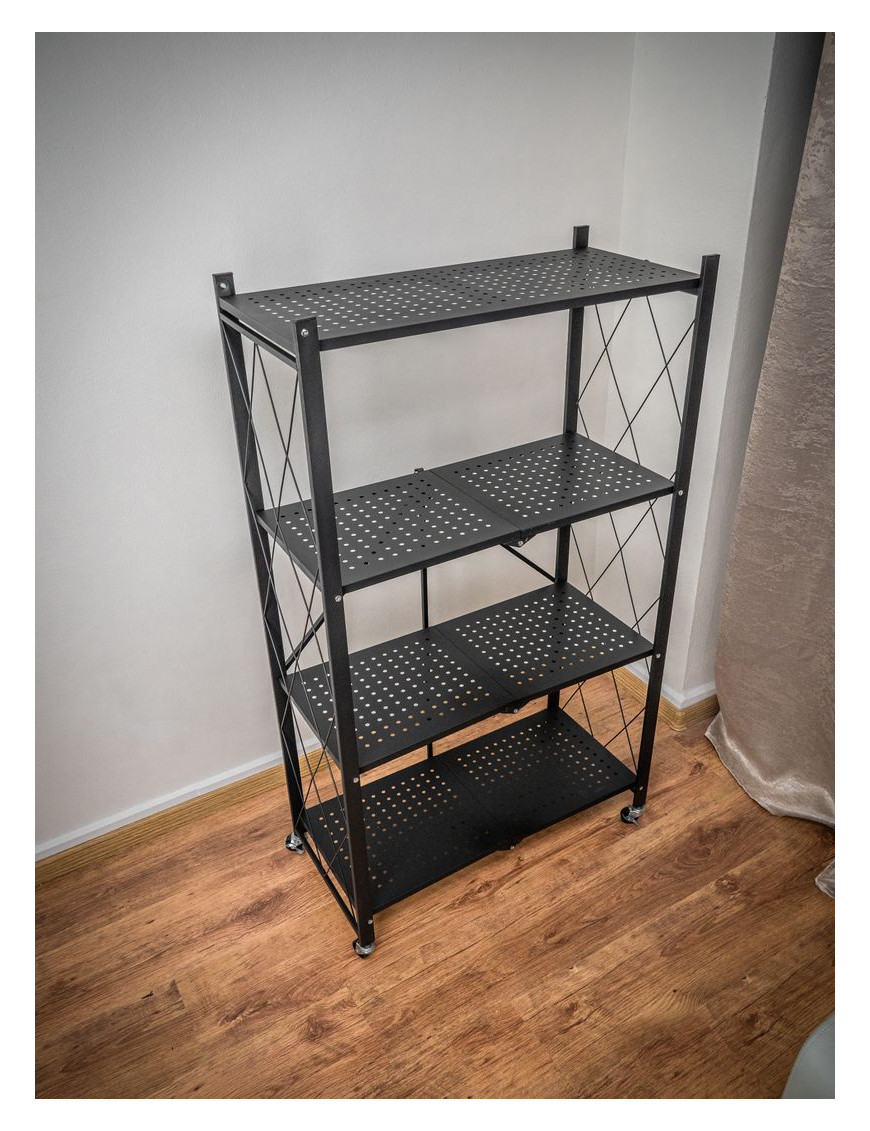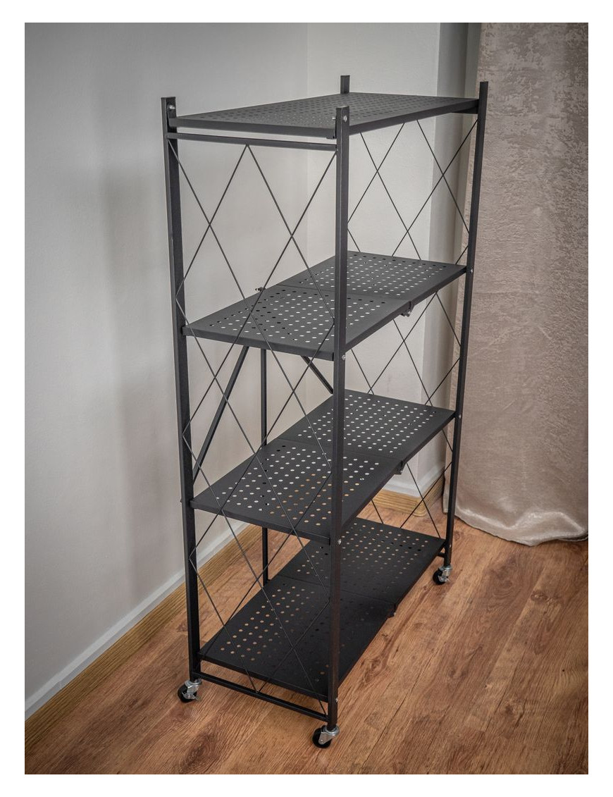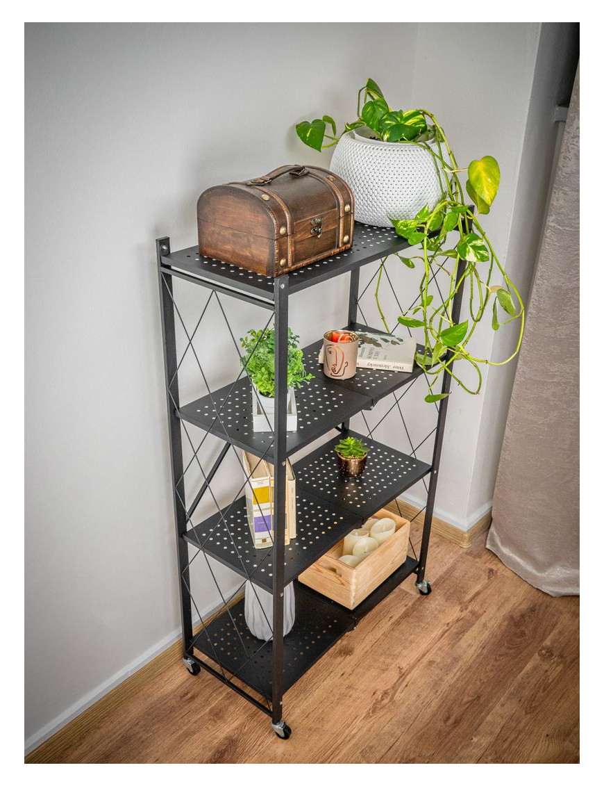 4-policový skladací a pojazdný regál MagicHome je praktický pomocník v domácnosti všade tam, kde potrebujete niečo uskladniť. Regál je celý kovový v elegantnom dizajne, jeho celková nosnosť je 200 kg a nosnosť jednej police je 50 kg pri rovnomernom zaťažení. Hlavnou výhodou regálu je jeho skladnosť a pojazdnosť. Vrchná časť sa jednoducho odmontuje a zvyšné police sa dajú jednoducho sklopiť, preto keď ho nepoužívate, jednoducho ho odložíte a vyberiete v prípade potreby. Keďže je postavený na 4 kolieskach, veľmi jednoducho ho presuniete a zabrzdíte 2 brzdami. Celkové rozmery regálu: 127x72x34 cm.