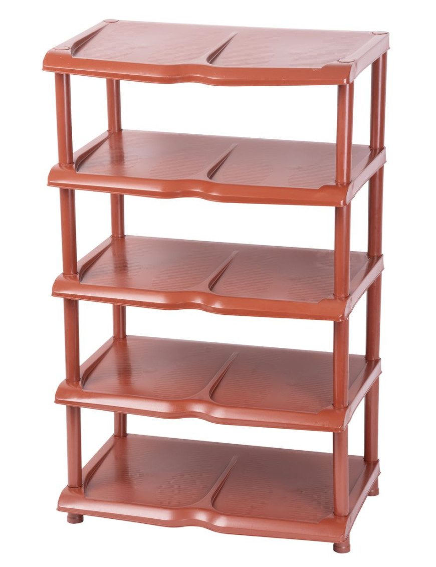 Perfektný regál na topánky vám uľahčí uloženie topánok. Je dostatočne veľký - má až 5 poschodí. Uložíte na neho až 10 párov topánok. Ľahko sa skladá, je jednoduchý na údržbu a manipuláciu. Prevedenie: plast. Farba: hnedá. Rozmery: 48x30,5x86 cm.