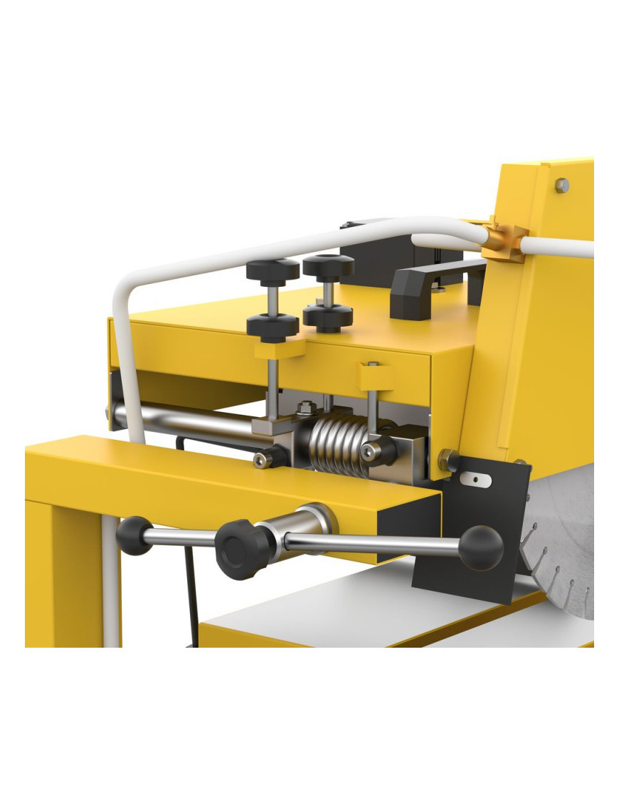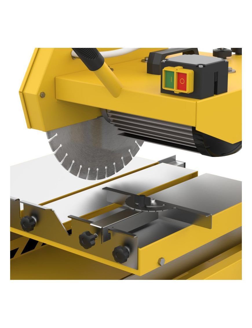 Všestranný a výkonný nástroj na presné rezanie rôznych materiálov, ako sú obrubníky a hlboké obrubníky, betónové materiály a dlažobné kocky, kamene. Hlavu možno otočiť až o 45°, umožňuje presné rezy v rôznych uhloch. Jemné nastavenie uhla rezu, pomocou excentrickej skrutky možno presne nastaviť uhol rezu. Podvozok s guľôčkovým ložiskom pre jednoduchú prepravu. Odpružené skladacie nožičky pre menší úložný priestor a zjednodušenie prepravy a skladovania. Zabudovaný osobný bezpečnostný spínač pre maximálnu bezpečnosť. Ochranný spínač proti preťaženiu a pozvoľný štart chráni stroj a zaisťuje bezpečnú prevádzku. Paralelný doraz umožňuje paralelné rezy až do šírky 210 mm. Maximálna hĺbka rezu 72 mm pri 45° a 115 mm pri 90°. Vďaka svojej robustnej konštrukcii a presným funkciám je rezačka ideálnou voľbou pre profesionálov aj domácich majstrov.