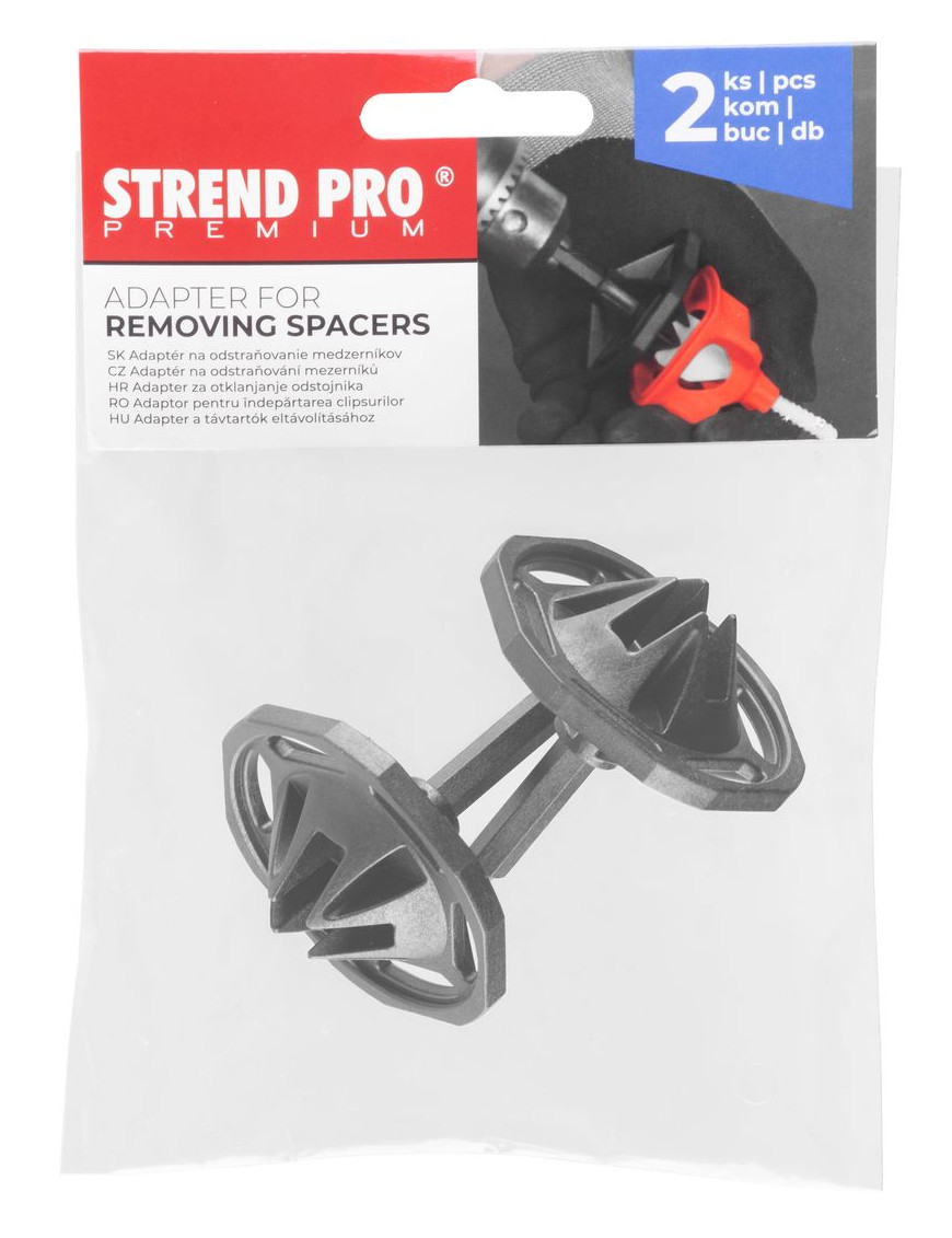 Adaptér na odstraňovanie medzerníkov Strend Pro Premium je určený pre jednoduché vykrútenie "klobúčikového nivelačného systému" pomocou elektrického skrutkovača. Balenie obsahuje 2 ks adaptérov.
